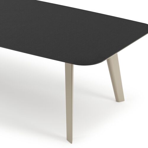 Table de jardin Lacrima forme de bateau en aluminium beige et céramique pleine Nero Black - Lg. 315 x Lrg. 115 x Haut. 73 cm | Exterioo