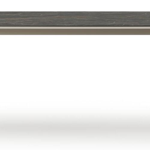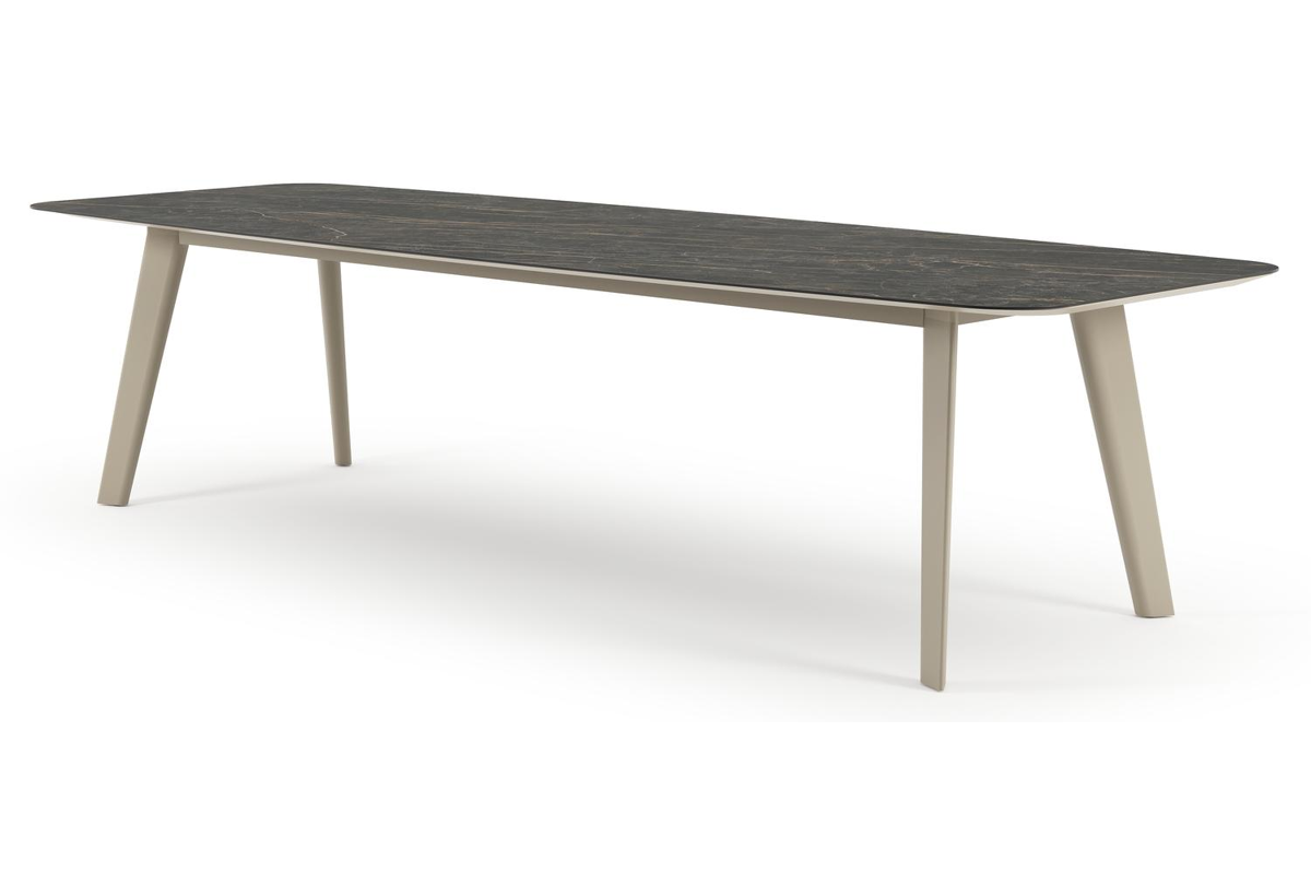 Table de jardin Lacrima forme de bateau en aluminium beige et céramique pleine Black Obsession - Lg. 315 x Lrg. 115 x Haut. 73 cm | Exterioo