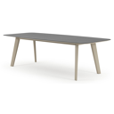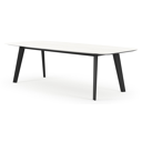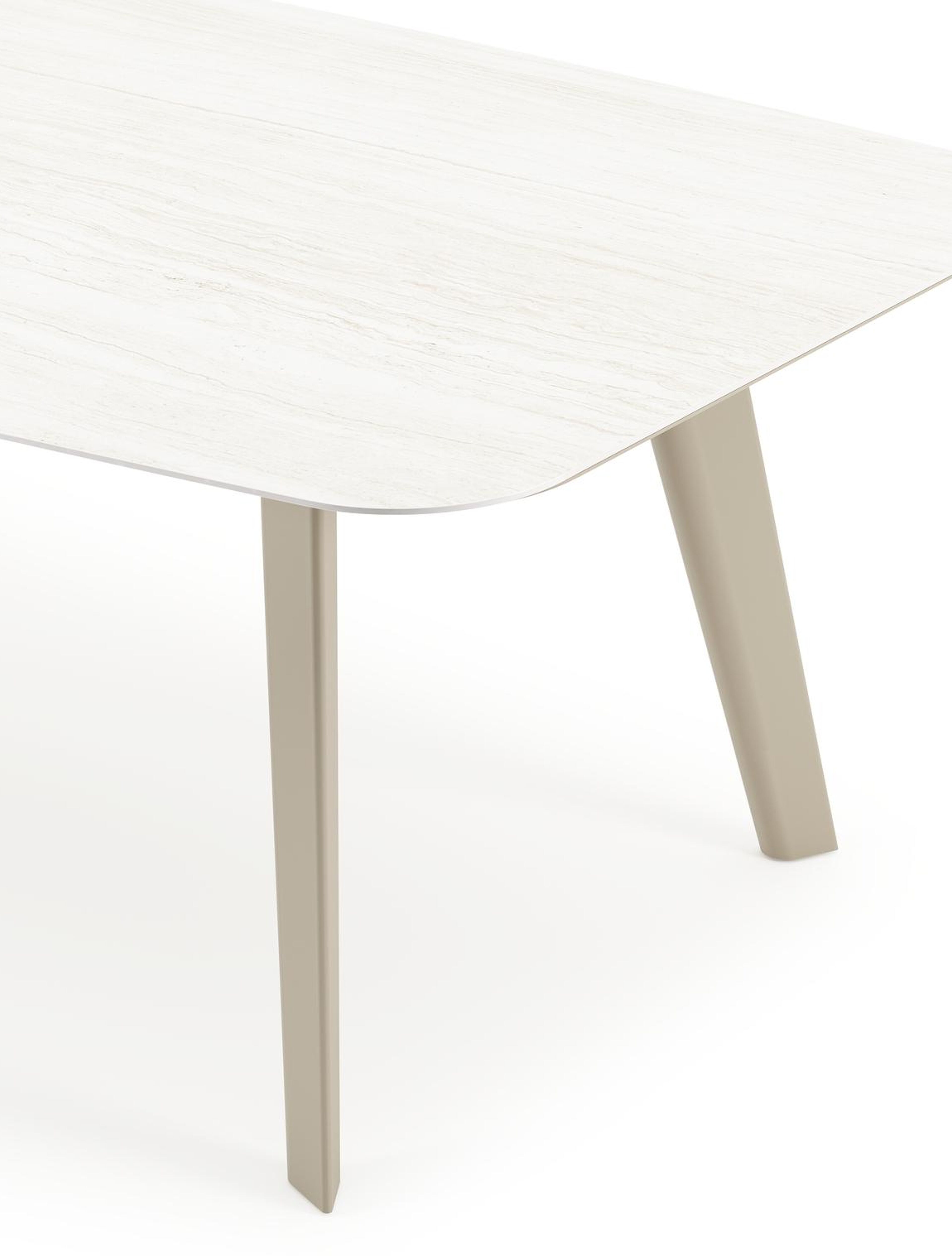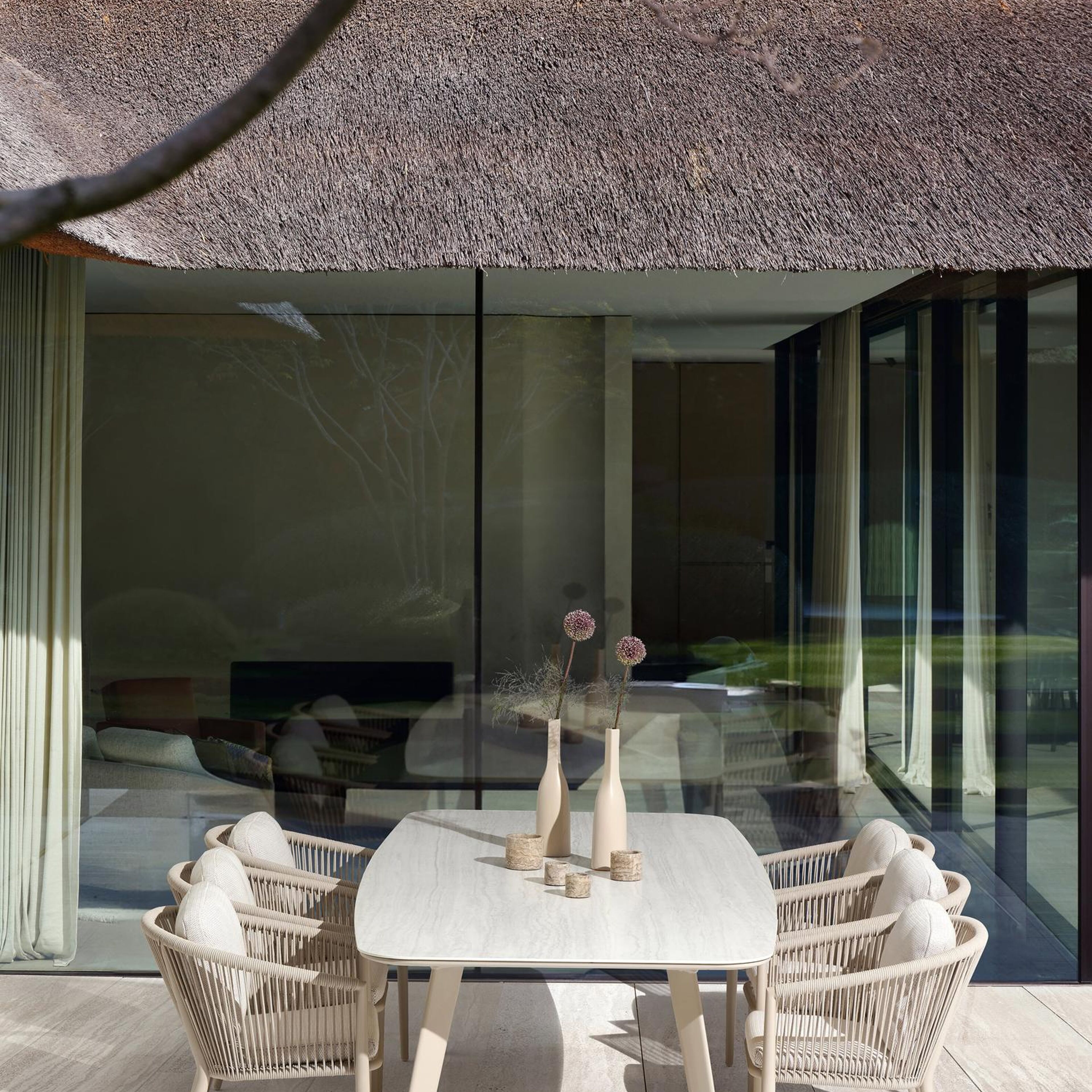 La table de jardin Lacrima a un look contemporain où l'on reconnaît facilement la table à ses pieds biseautés.