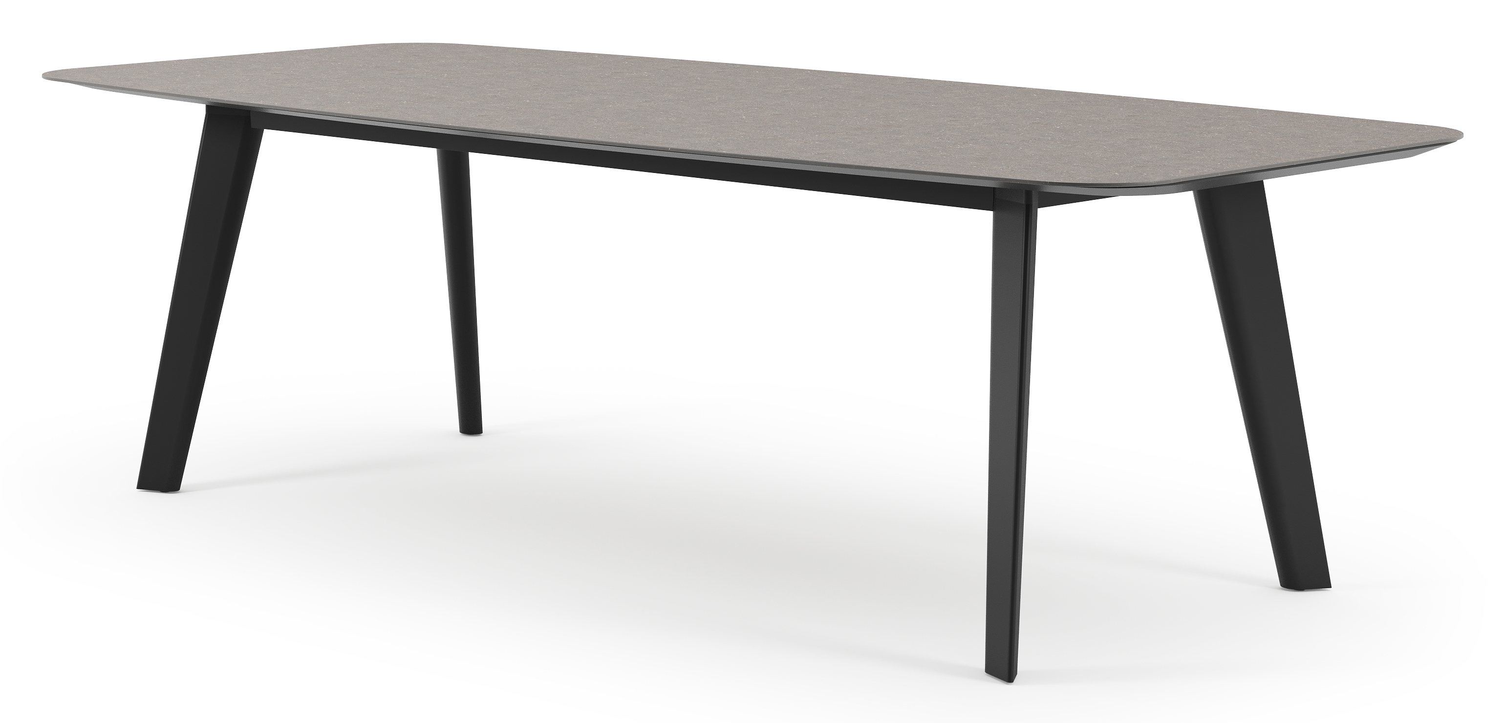 La table de jardin Lacrima a un look contemporain où l'on reconnaît facilement la table à ses pieds biseautés.