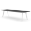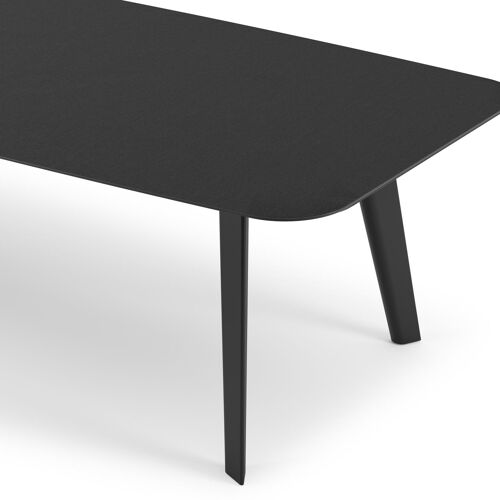 La table de jardin Lacrima a un look contemporain où l'on reconnaît facilement la table à ses pieds biseautés.