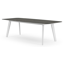 La table de jardin Lacrima a un look contemporain où l'on reconnaît facilement la table à ses pieds biseautés.