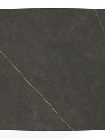 Le Calatorao est inspiré d’une pierre calcaire grise. Le plateau de table présente un effet de marbre apaisant avec ses veines dorées sur des nuances de couleur gris foncé.