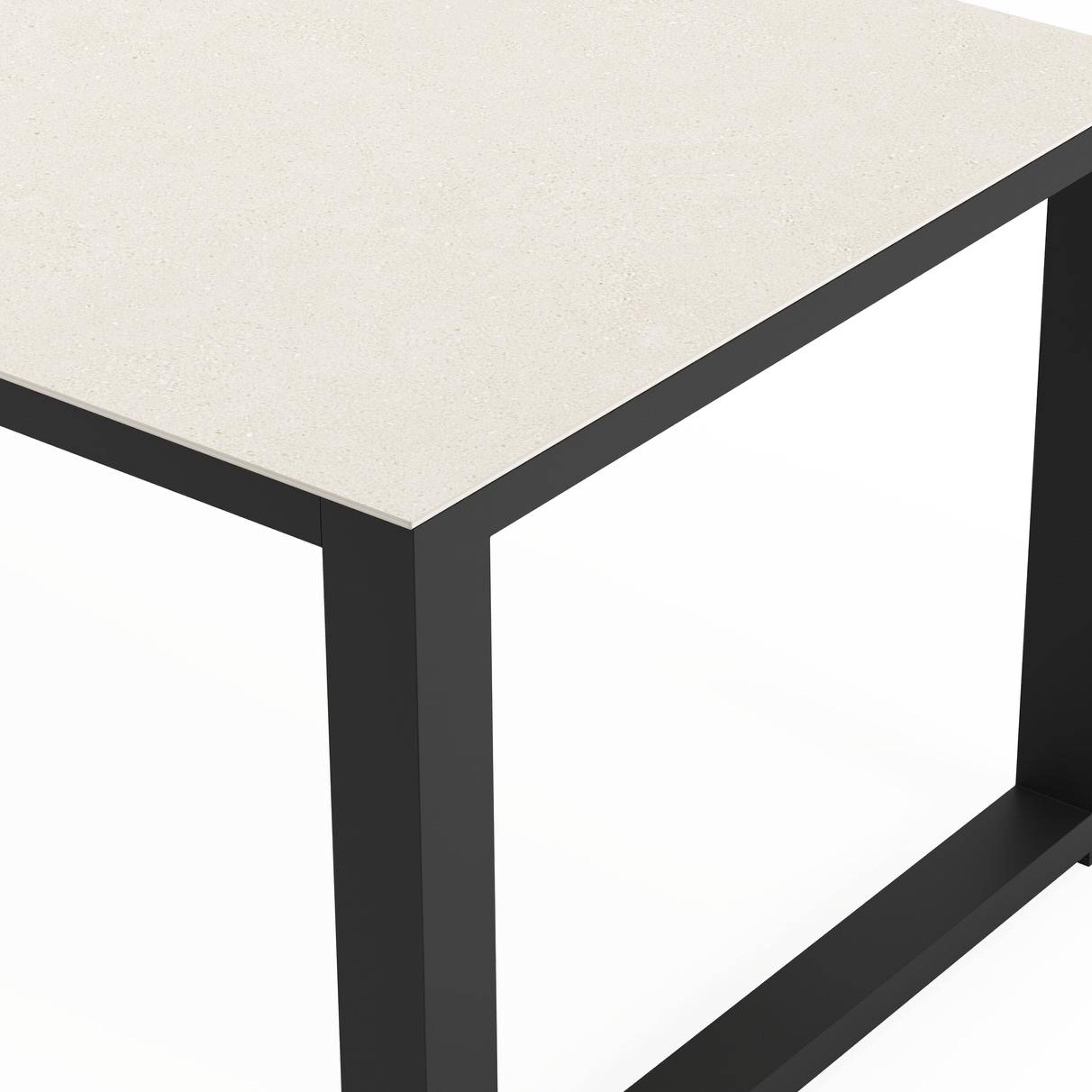 L’armature de la table est en aluminium inoxydable, un matériau robuste mais léger, qui est facile à déplacer. La surface présente une finition lisse, de sorte qu’elle n’attire pas la saleté et est facile à entretenir. Le revêtement poudré garantit la résistance aux UV et aux intempéries de votre meuble.