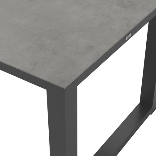 L’armature de la table est en aluminium inoxydable, un matériau robuste mais léger, qui est facile à déplacer. La surface présente une finition lisse, de sorte qu’elle n’attire pas la saleté et est facile à entretenir. Le revêtement poudré garantit la résistance aux UV et aux intempéries de votre meuble.