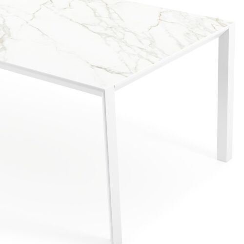 Le Calacatta est un plateau de table dont la couleur de base est le blanc, doté de veines grises produisant un effet de marbre caractéristique.