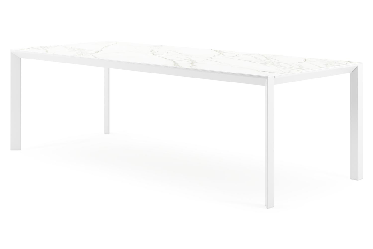 Un plateau de table entièrement en céramique consiste en une plaque en céramique qui est cuite à une température extrêmement élevée. Ce matériau est très solide et résiste aux coups. Un plateau de table entièrement en céramique résiste au gel, à la chaleur et aux rayures, et est facile à nettoyer.