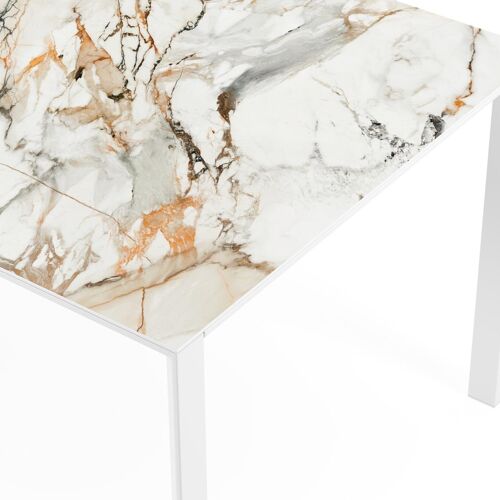 Le Calacatta Luxe est un véritable accroche-regard à l’aspect luxueux. Le blanc est la couleur de base, mais des contrastes et des nuances de couleurs intenses produisent un effet saisissant. La finition de veines grises et jaune or crée un magnifique effet de marbre.