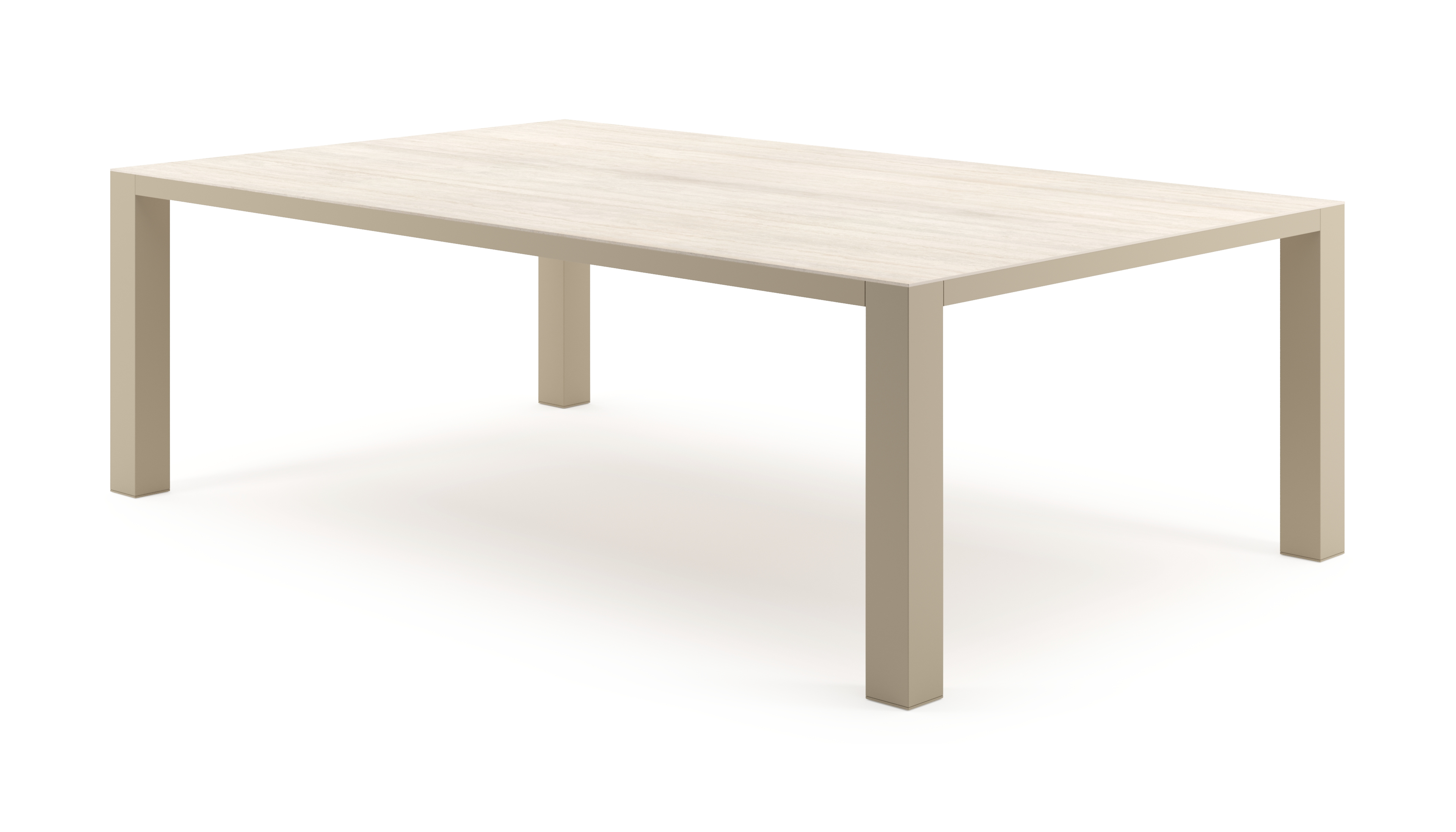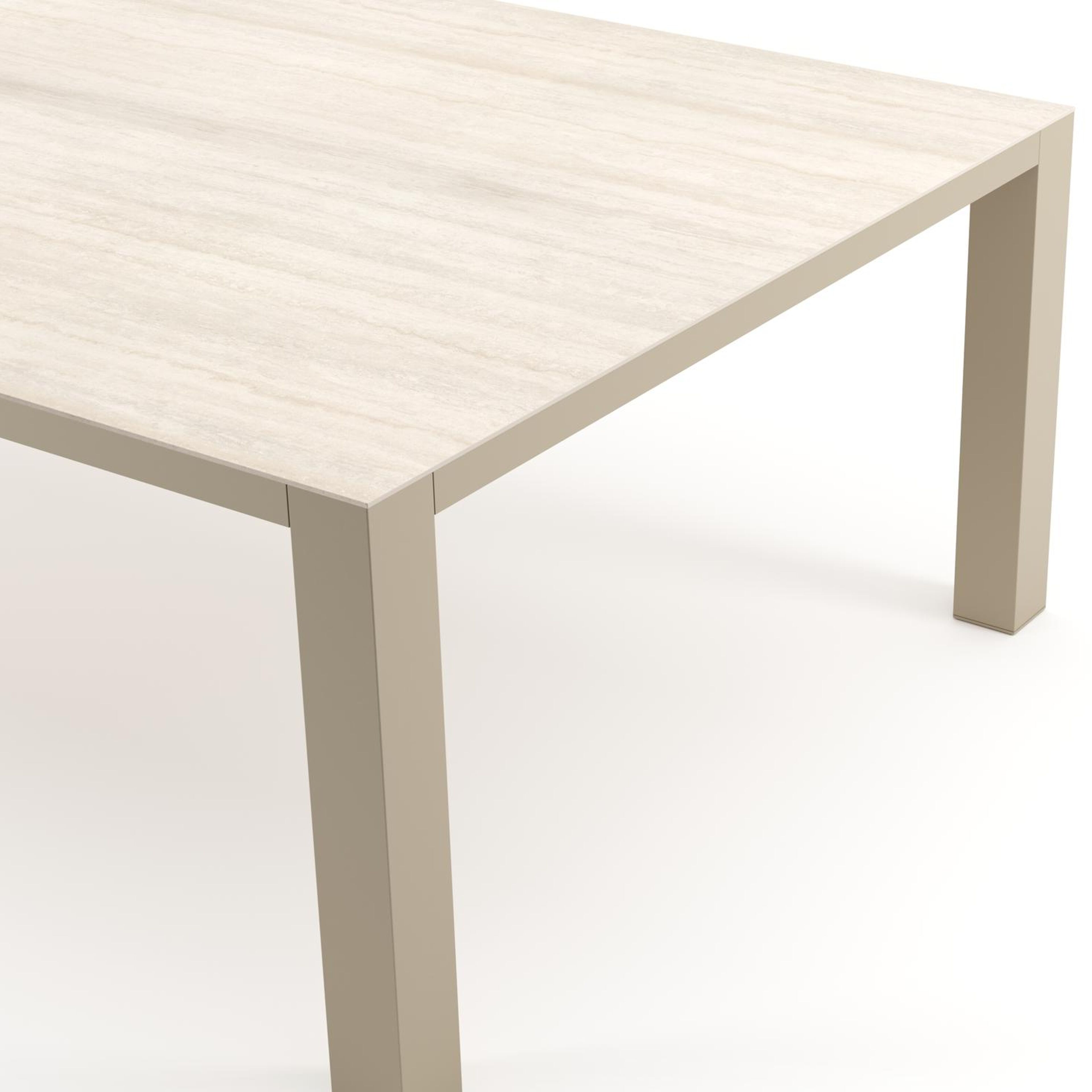 Table de jardin Nano rectangulaire en aluminium beige et céramique pleine Travertino Bianco - Lg. 240 x Lrg. 148 x Haut. 75 cm | Exterioo mobilier de jardin