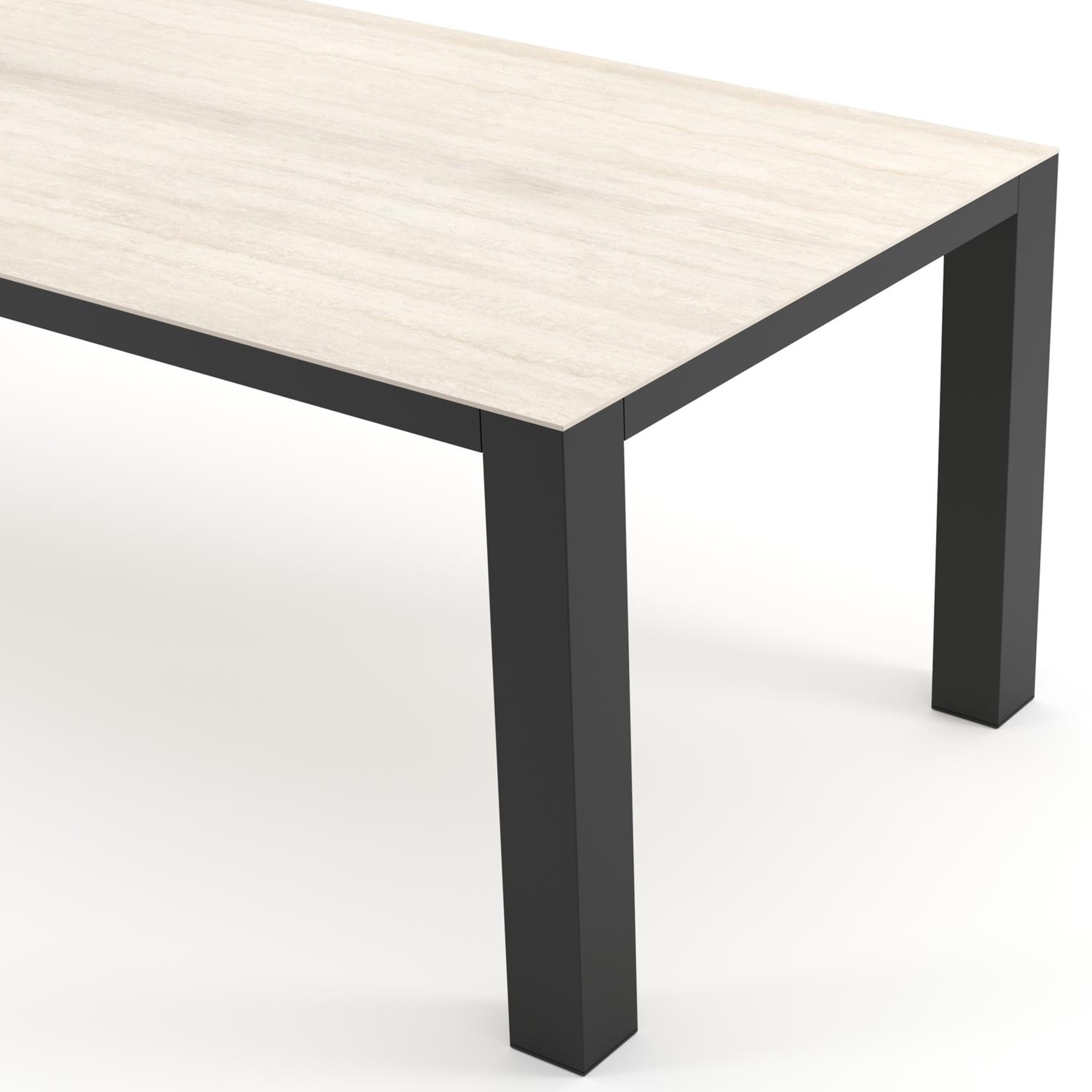 Table de jardin Nano rectangulaire en aluminium noir et céramique pleine Travertino Bianco - Lg. 240 x Lrg. 100 x Haut. 75 cm | Exterioo mobilier de jardin