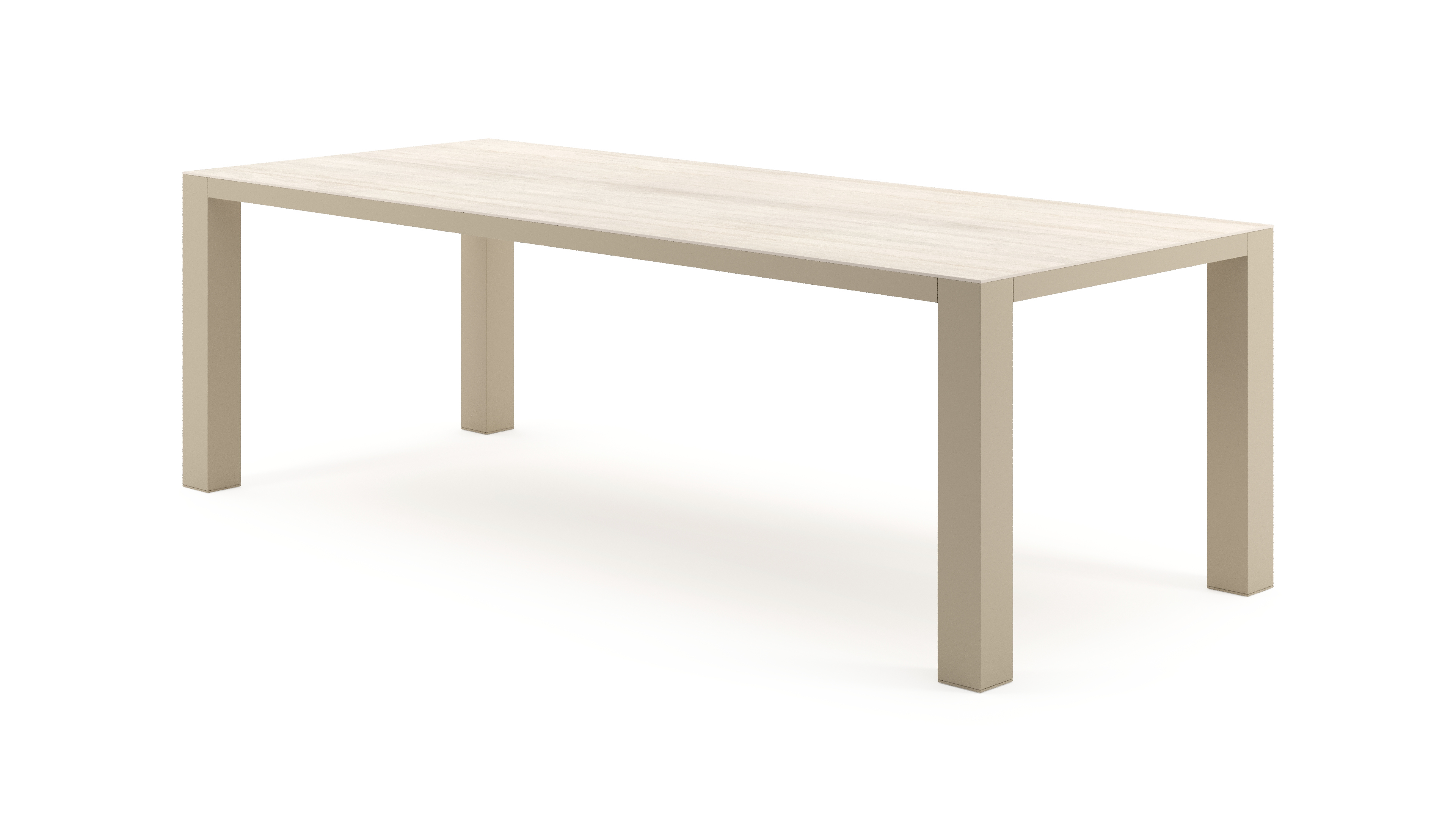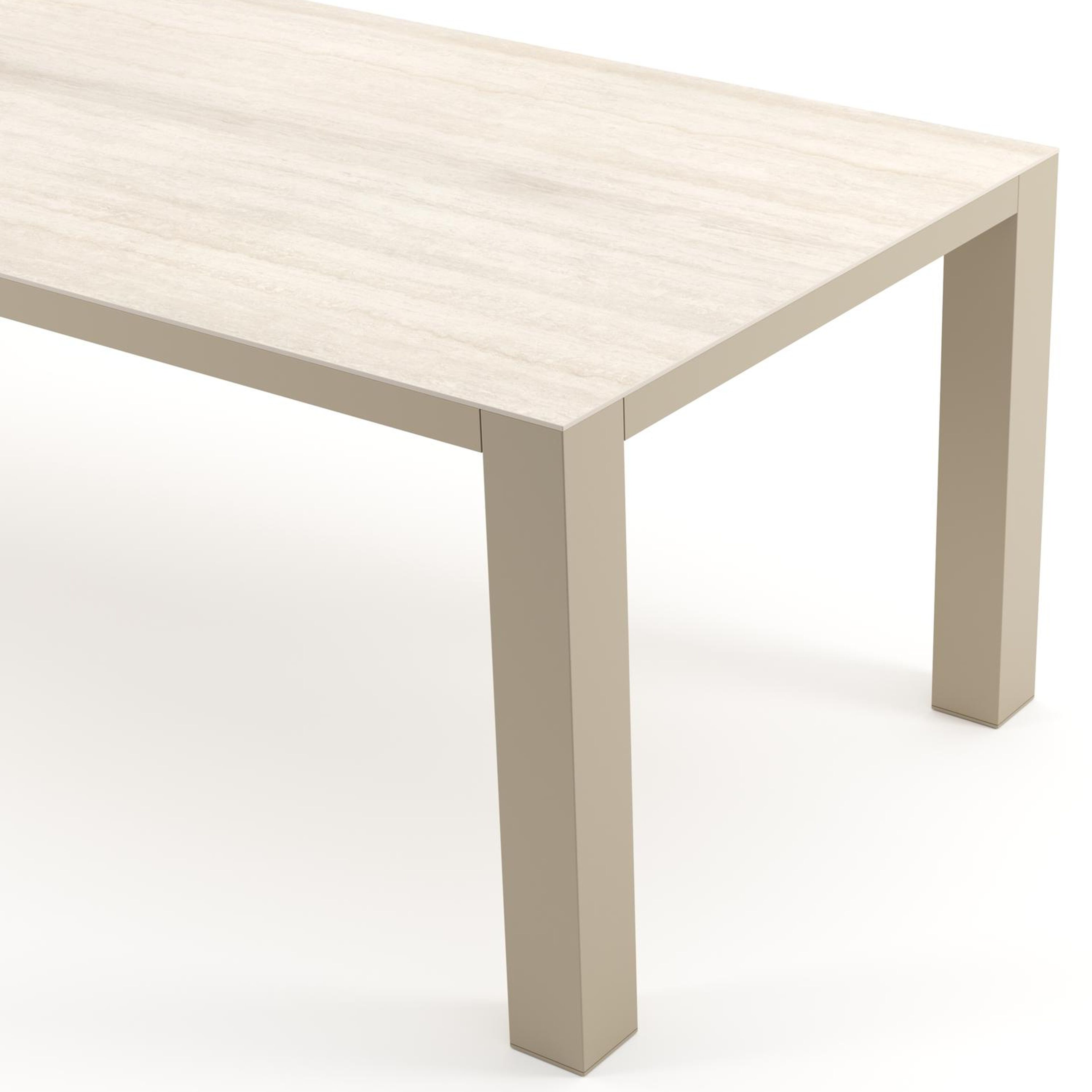Table de jardin Nano rectangulaire en aluminium beige et céramique pleine Travertino Bianco - Lg. 240 x Lrg. 100 x Haut. 75 cm | Exterioo mobilier de jardin