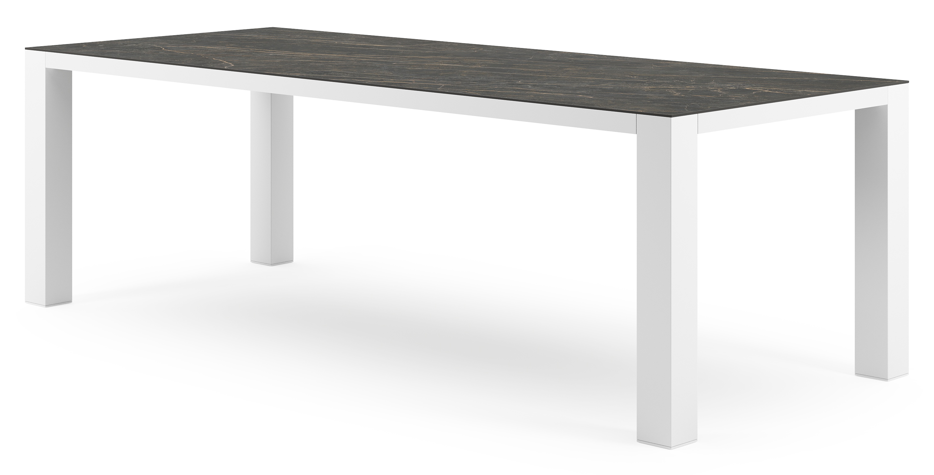 Table de jardin Nano rectangulaire en aluminium blanc et céramique pleine Black Obsession - Lg. 240 x Lrg. 100 x Haut. 75 cm | Exterioo mobilier de jardin