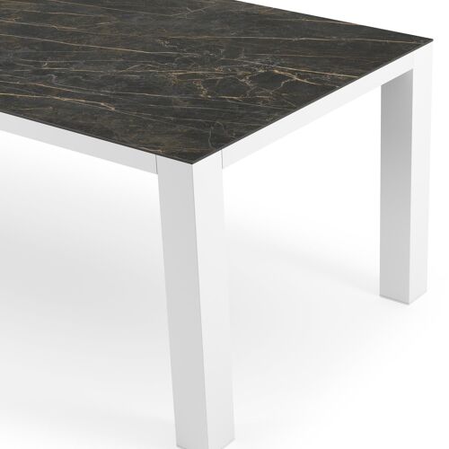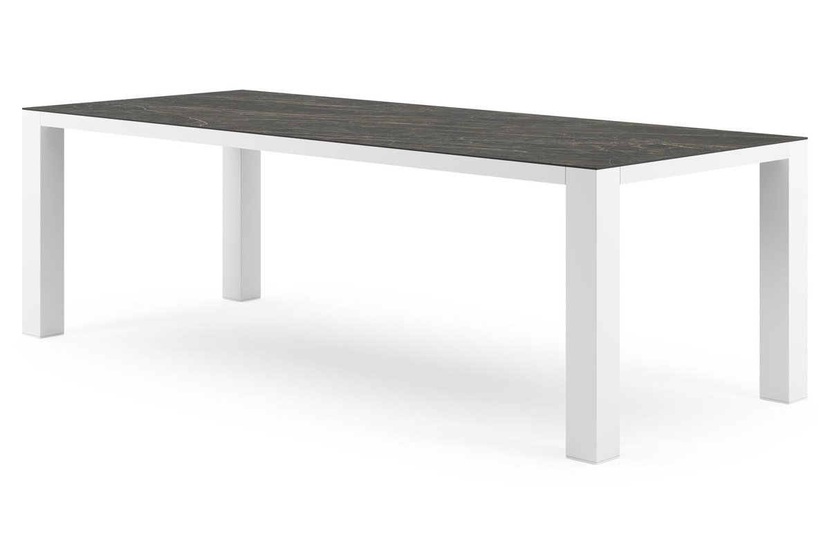 Table de jardin Nano rectangulaire en aluminium blanc et céramique pleine Black Obsession - Lg. 240 x Lrg. 100 x Haut. 75 cm | Exterioo