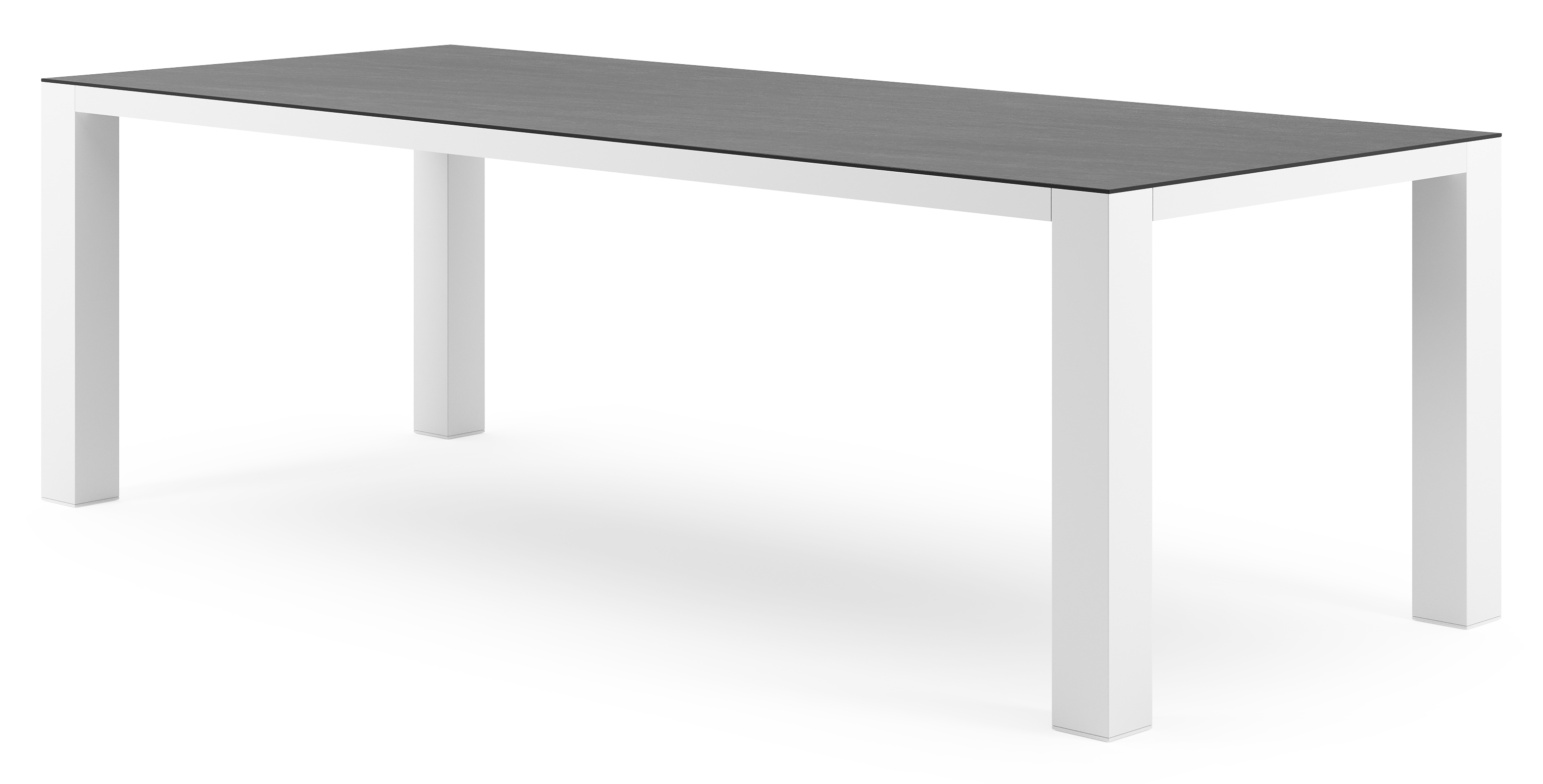 Table de jardin Nano rectangulaire en aluminium blanc et céramique pleine Basalt Black - Lg. 240 x Lrg. 100 x Haut. 75 cm | Exterioo mobilier de jardin