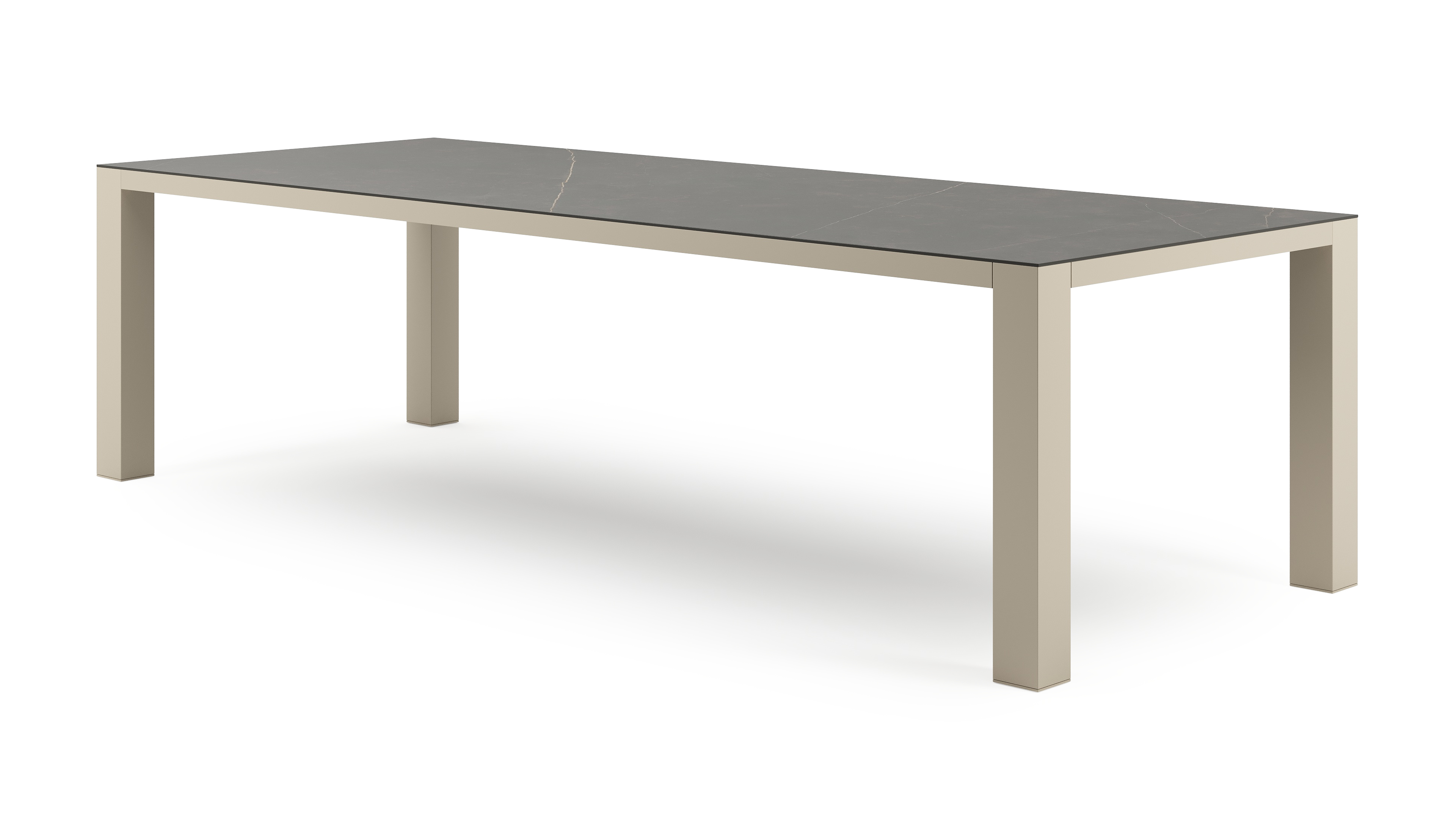 Table de jardin Nano rectangulaire en aluminium beige et céramique pleine Calatorao - Lg. 280 x Lrg. 110 x Haut. 75 cm | Exterioo mobilier de jardin