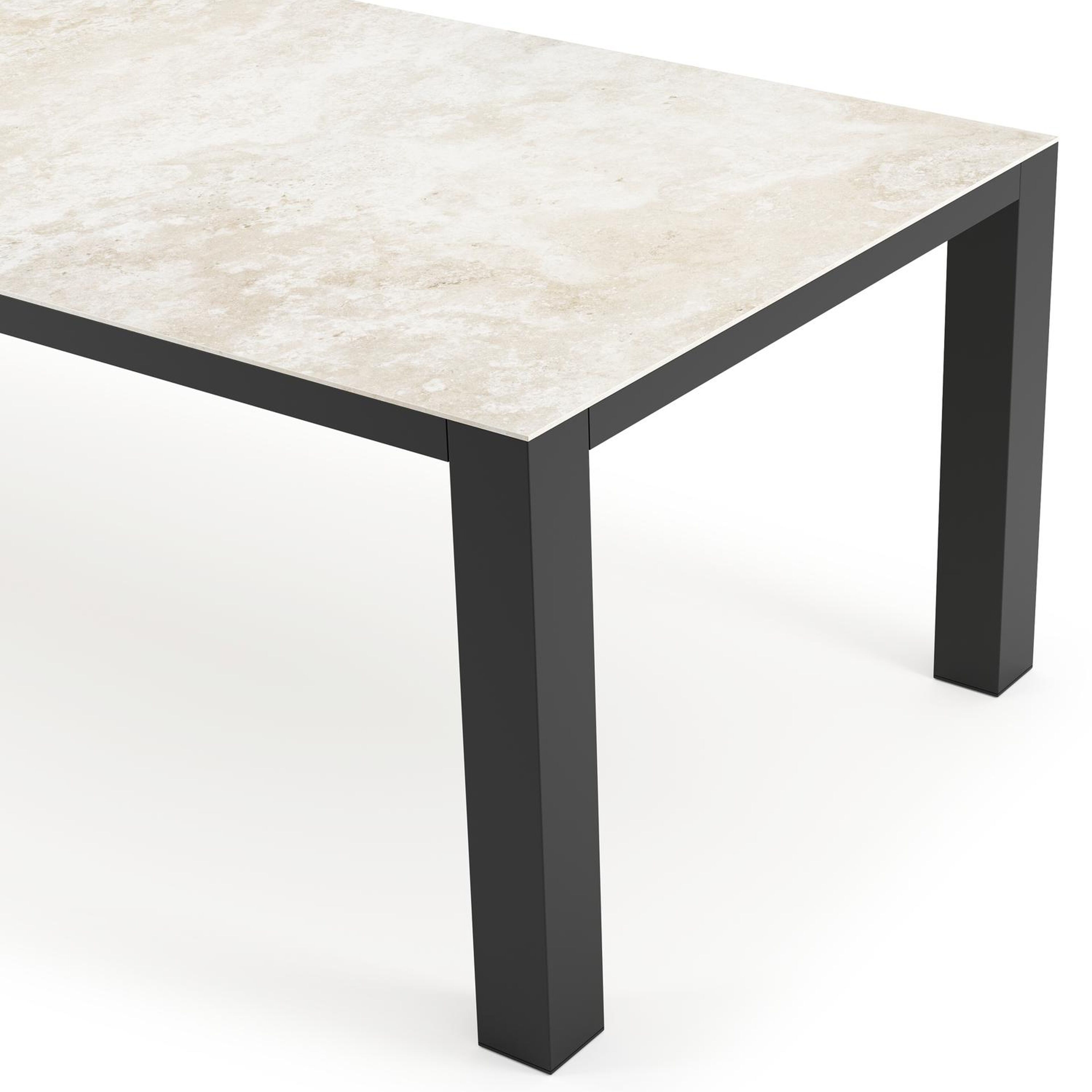 Un plateau de table entièrement en céramique consiste en une plaque en céramique qui est cuite à une température extrêmement élevée. Ce matériau est très solide et résiste aux coups. Un plateau de table entièrement en céramique résiste au gel, à la chaleur et aux rayures, et est facile à nettoyer.