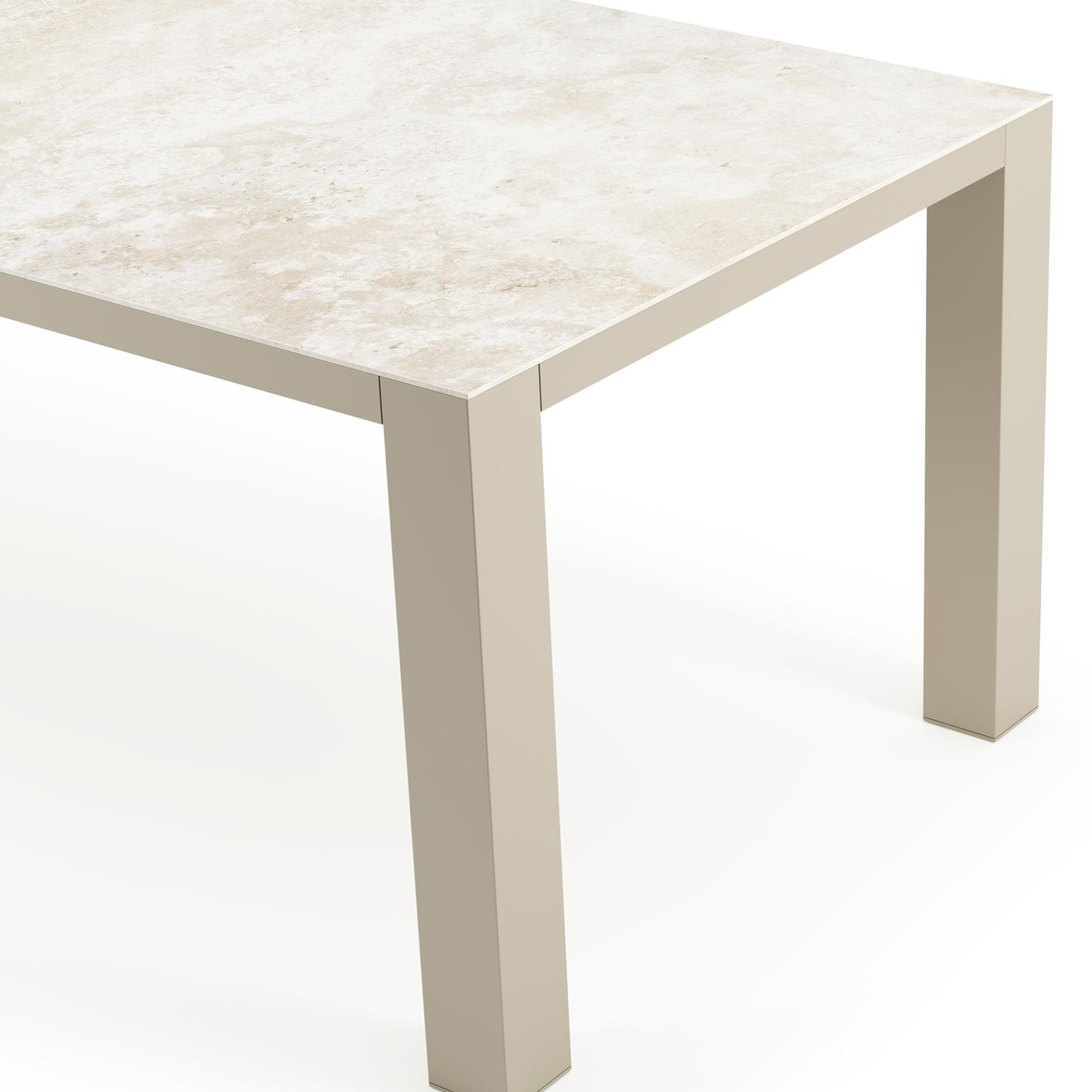 L’armature de la table est en aluminium inoxydable, un matériau robuste mais léger, qui est facile à déplacer. La surface présente une finition lisse, de sorte qu’elle n’attire pas la saleté et est facile à entretenir. Le revêtement poudré garantit la résistance aux UV et aux intempéries de votre meuble.