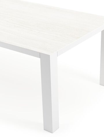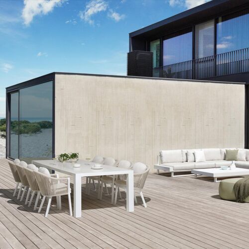 L’armature de la table est en aluminium inoxydable, un matériau robuste mais léger, qui est facile à déplacer. La surface présente une finition lisse, de sorte qu’elle n’attire pas la saleté et est facile à entretenir. Le revêtement poudré garantit la résistance aux UV et aux intempéries de votre meuble.