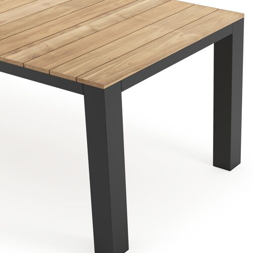 Table de jardin Nano en aluminium noir et teck - Lg 240 x Larg. 100 x H 75 cm | Exterioo