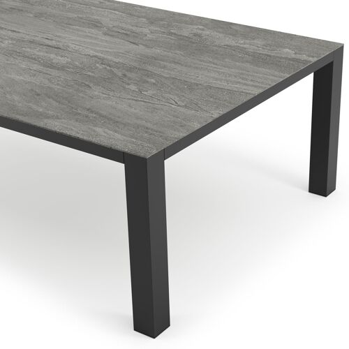 Table de jardin Nano en aluminium noir et céramique pleine aspen grey - Lg 240 x Larg. 148 x H 75 cm | Exterioo
