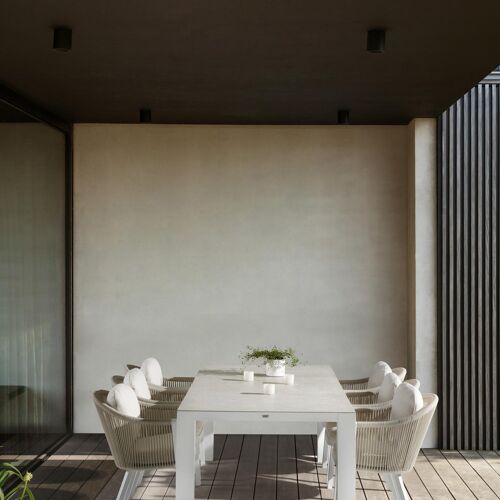La table de jardin Nano reflète une forme robuste grâce à ses pieds solides en forme carré. Le design épuré s'intègre donc parfaitement dans un style contemporain ou moderne.