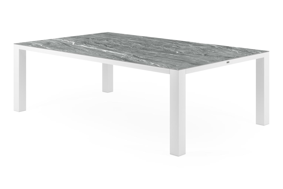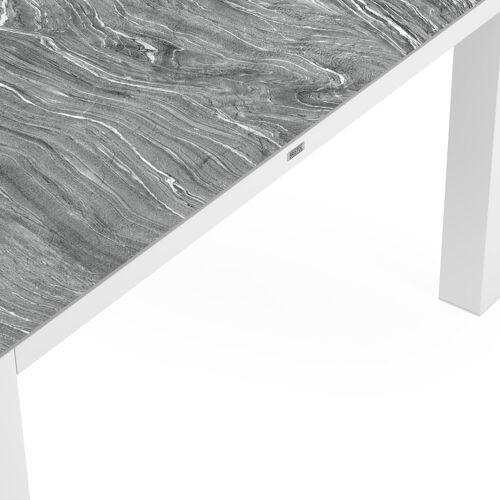 La table Nano est reconnaissable à ses pieds robustes et solides. L’armature est en aluminium, un matériau léger mais robuste et inoxydable qui convient très bien aux meubles de jardin. Cette table est dotée d’un plateau Mar Del Plata. Un plateau de table unique reflétant les vagues de la mer. Le plateau présente des mouchetures scintillantes qui créent un magnifique effet perlé. L’avantage des plateaux de table en céramique pleine est qu’ils résistent aux rayures ainsi qu’à toutes les conditions météorologiques.