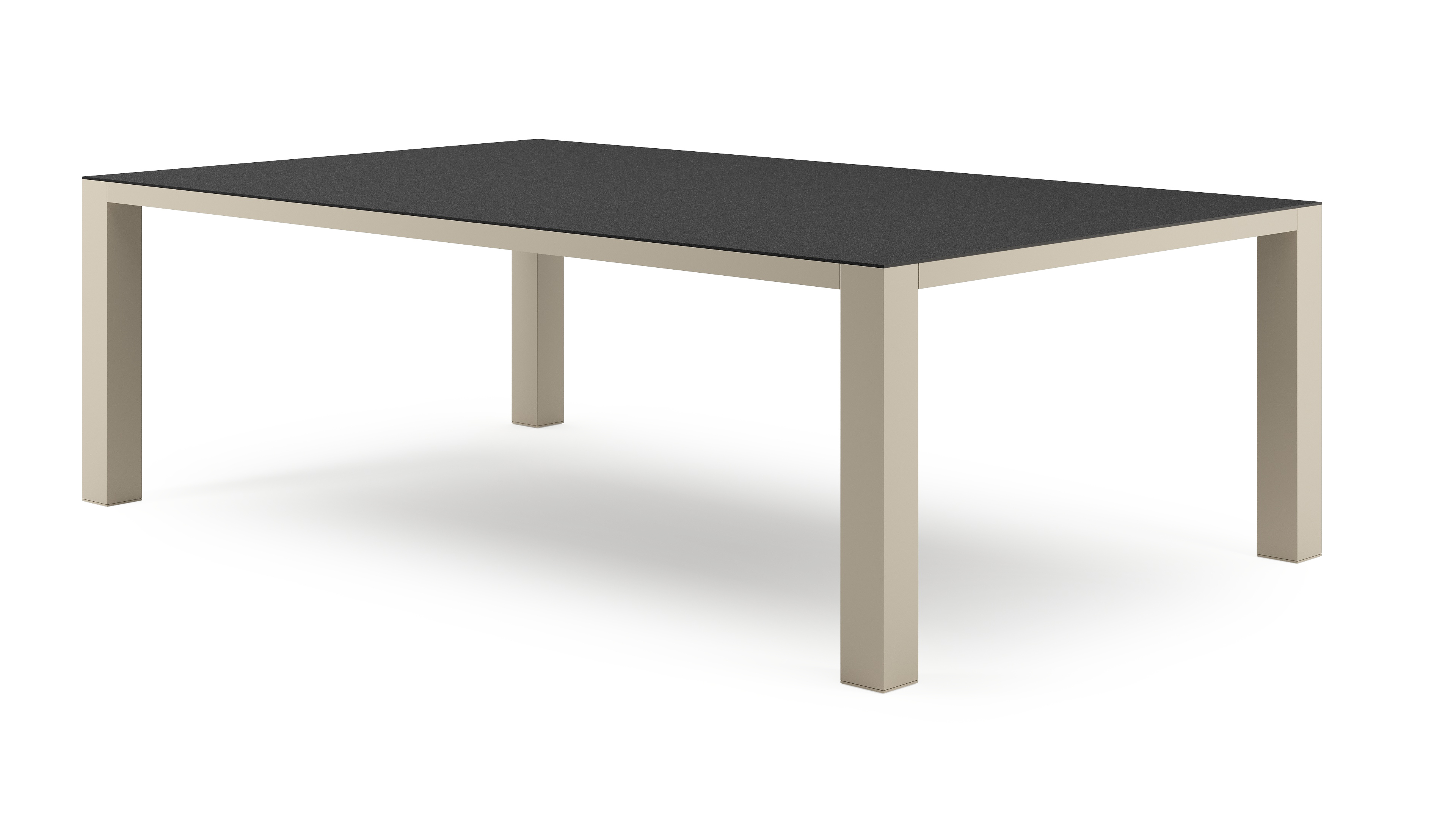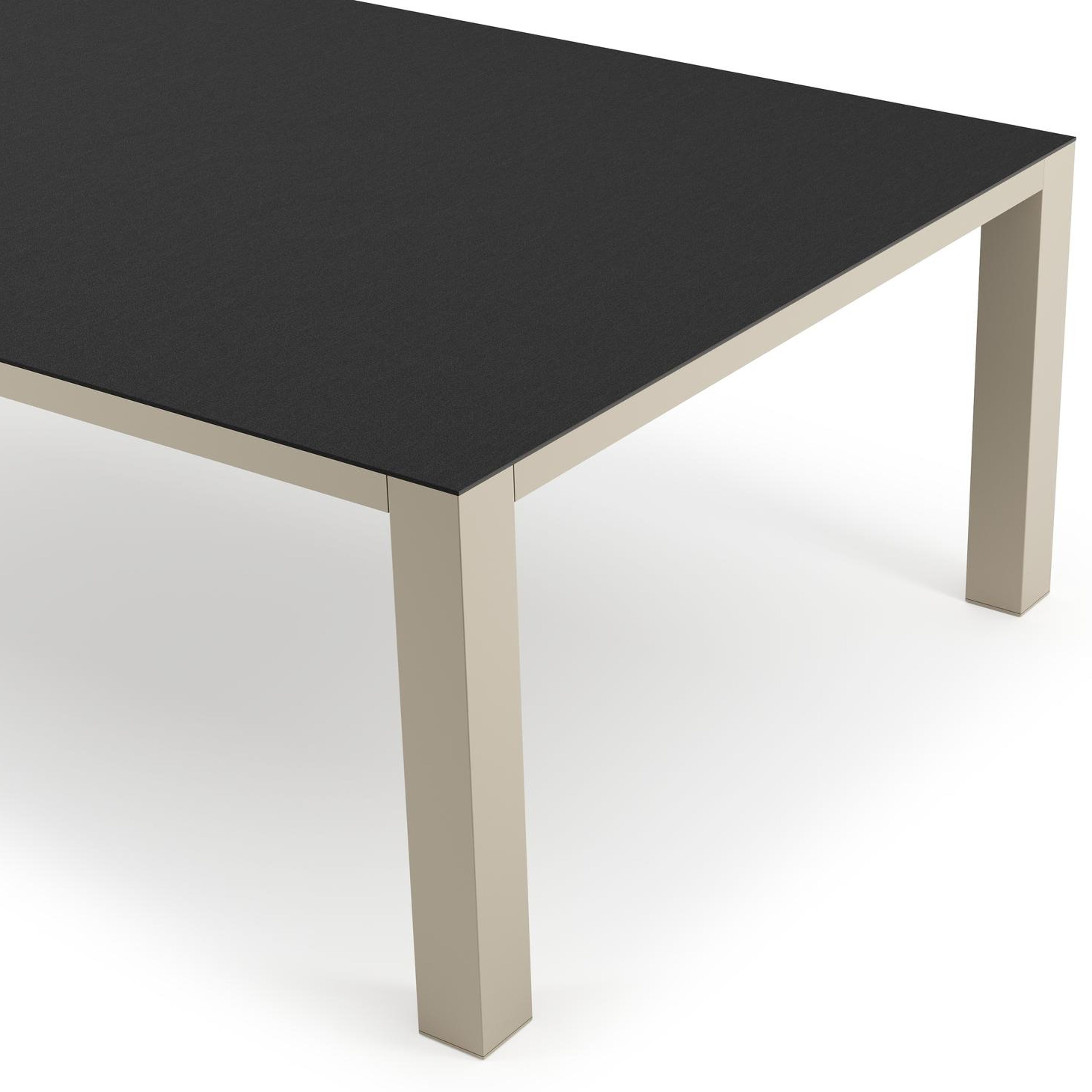 Table de jardin Nano XL rectangulaire en aluminium beige et céramique pleine Nero Black - Lg. 240 x Lrg. 148 x Haut. 75 cm | Exterioo mobilier de jardin