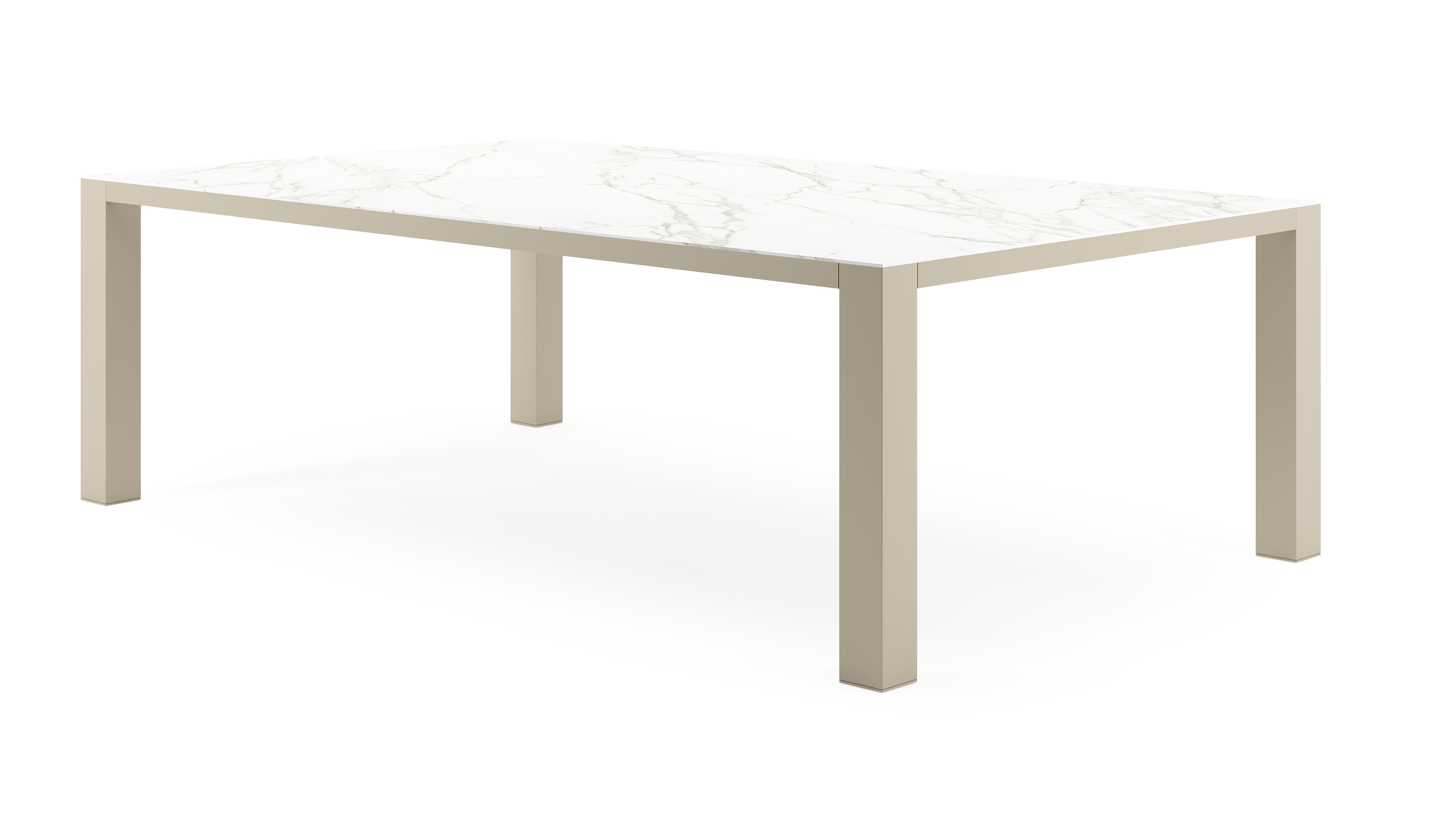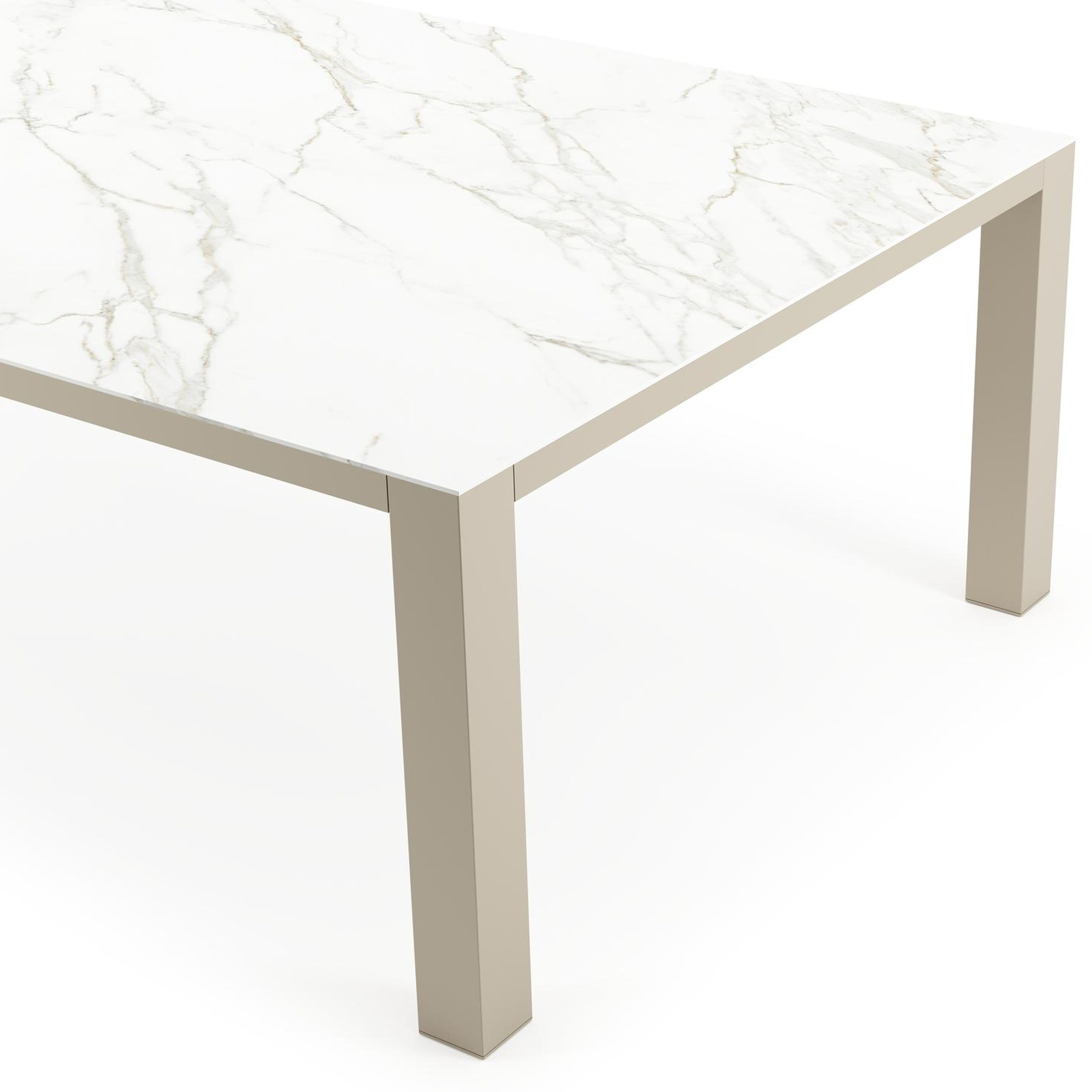 Table de jardin Nano XL rectangulaire en aluminium beige et céramique pleine Calacatta - Lg. 240 x Lrg. 148 x Haut. 75 cm | Exterioo mobilier de jardin