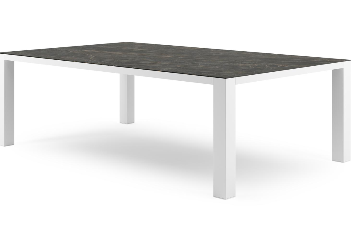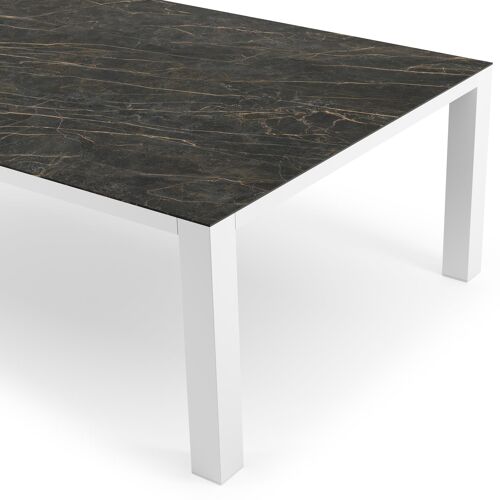 Table de jardin Nano XL rectangulaire en aluminium blanc et céramique pleine Black Obsession - Lg. 240 x Lrg. 148 x Haut. 75 cm | Exterioo