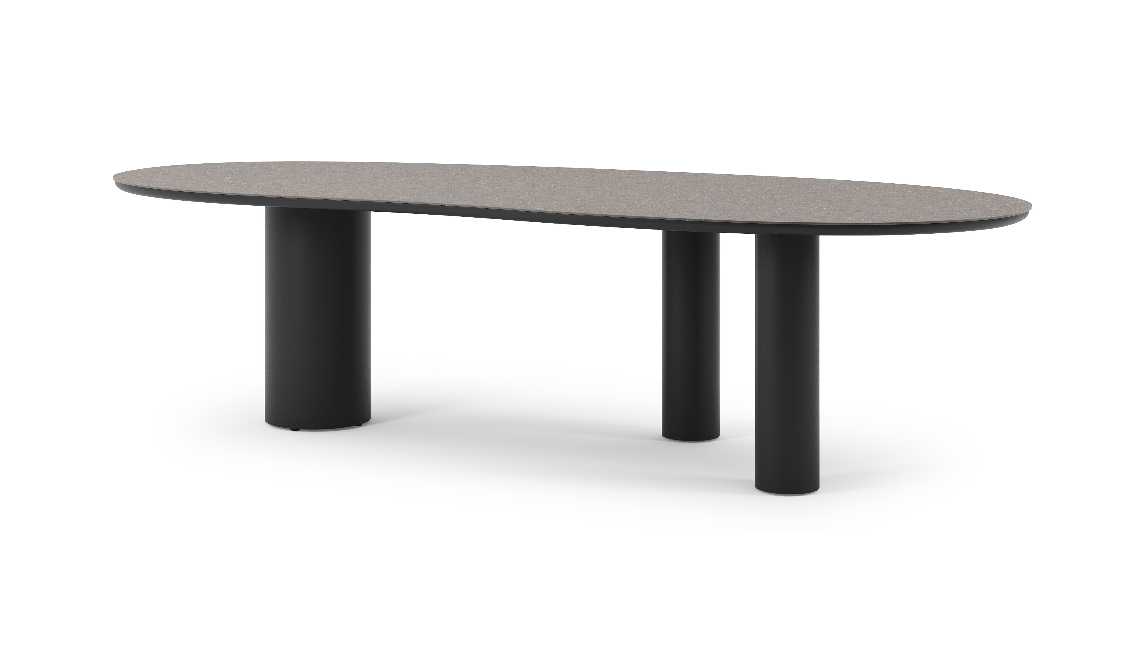 La table de jardin Organo se distingue par son design unique, avec un plateau de table de forme organique qui lui confère une allure contemporaine. La table repose sur un pied rond robuste et épais, et sur deux pieds ronds plus fins. Ensemble, ils créent un équilibre magistral entre le luxe et la modernité, faisant de cette table la pièce maîtresse de votre espace extérieur.