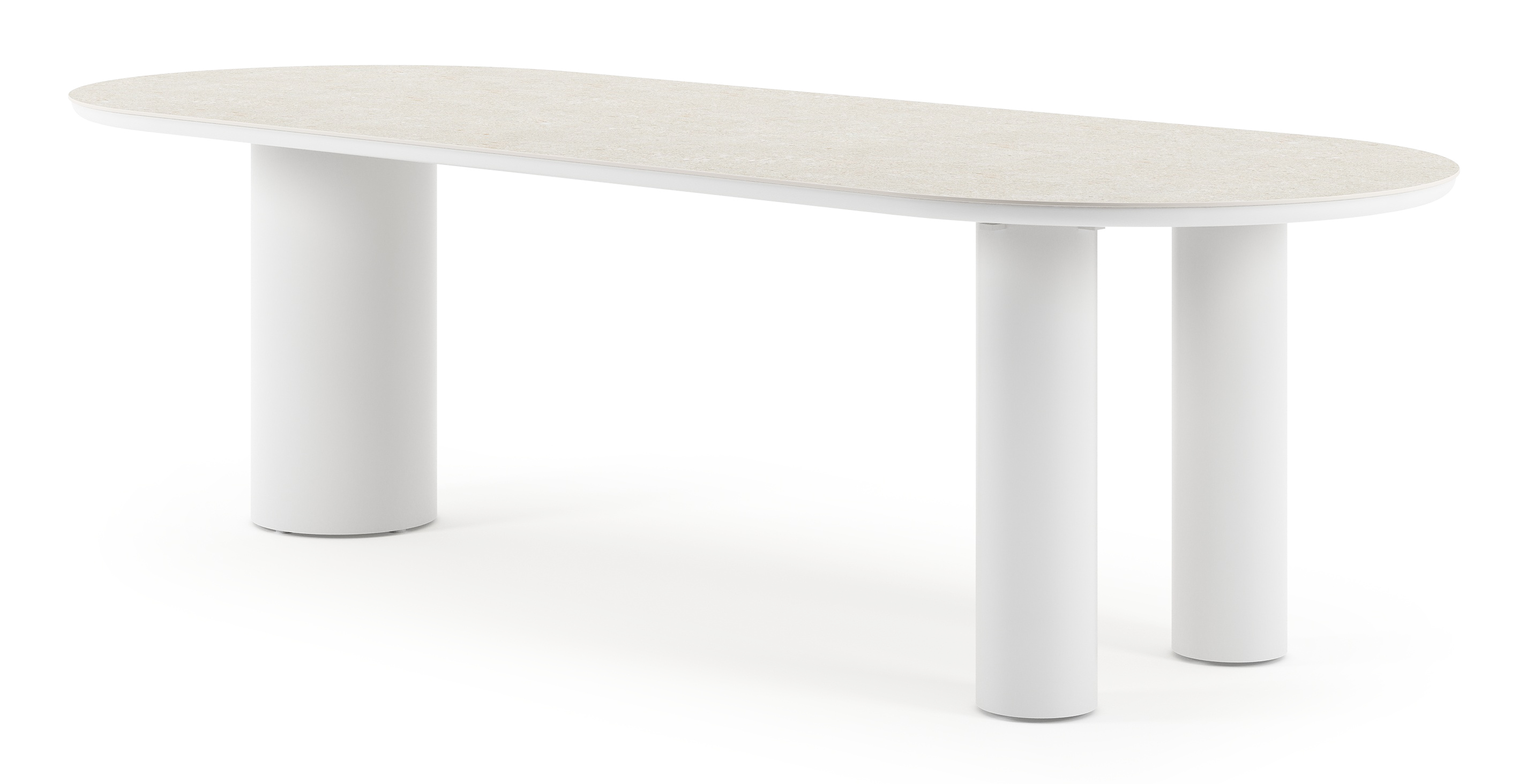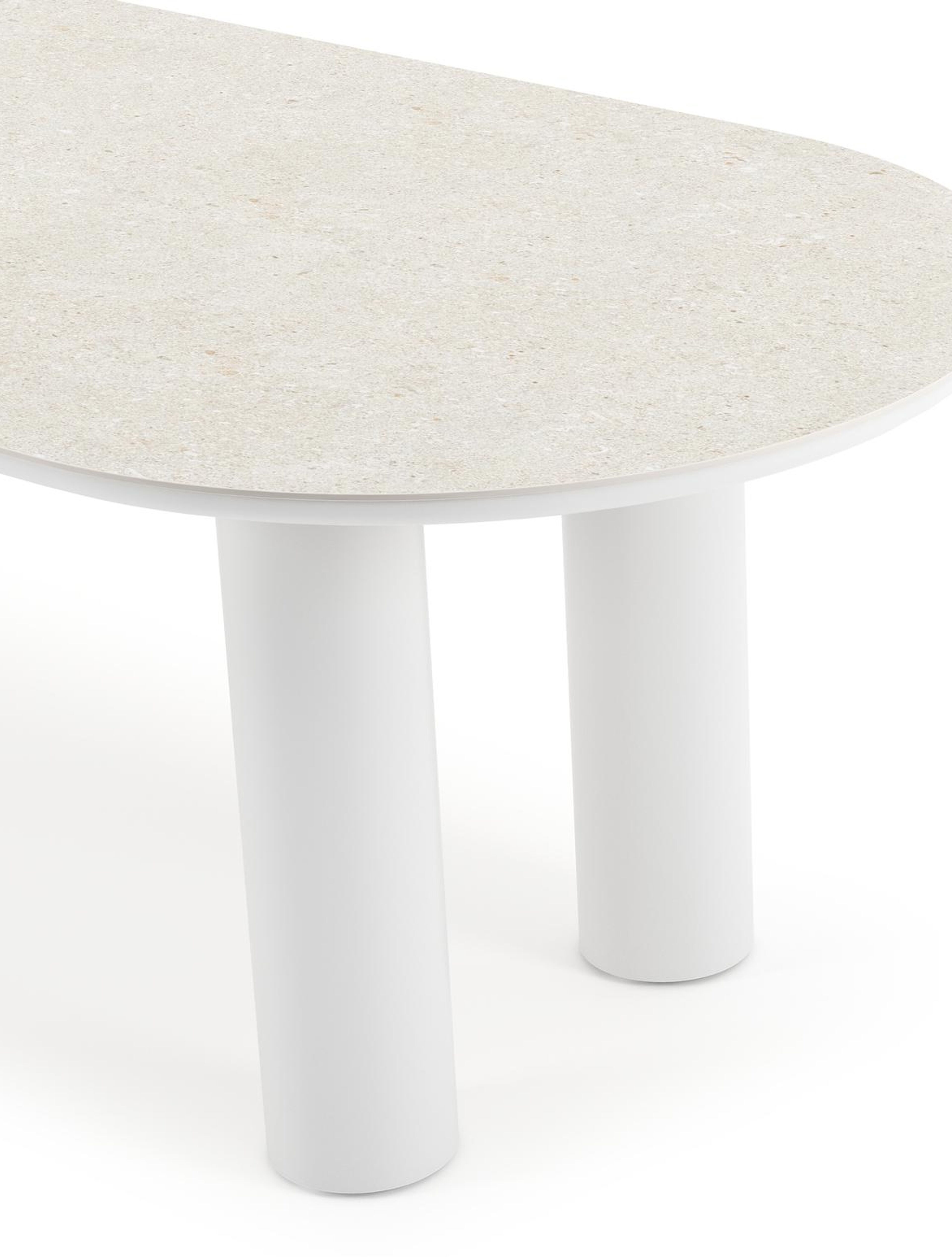La table de jardin Organo se distingue par son design unique, avec un plateau de table de forme organique qui lui confère une allure contemporaine. La table repose sur un pied rond robuste et épais, et sur deux pieds ronds plus fins. Ensemble, ils créent un équilibre magistral entre le luxe et la modernité, faisant de cette table la pièce maîtresse de votre espace extérieur.