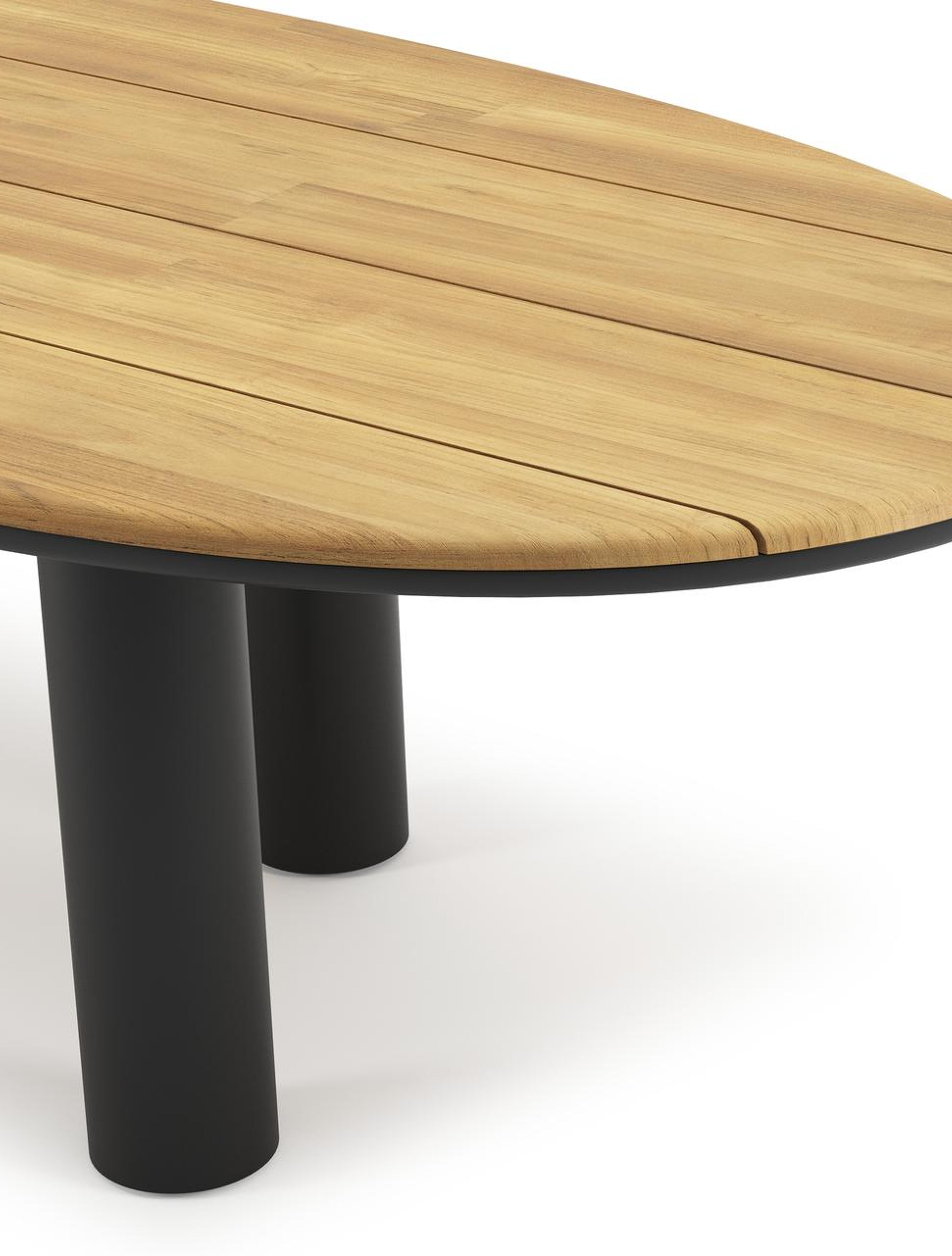 La table de jardin Organo se distingue par son design unique, avec un plateau de table de forme organique qui lui confère une allure contemporaine. La table repose sur un pied rond robuste et épais, et sur deux pieds ronds plus fins. Ensemble, ils créent un équilibre magistral entre le luxe et la modernité, faisant de cette table la pièce maîtresse de votre espace extérieur.