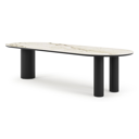La table de jardin Organo se distingue par son design unique, avec un plateau de table de forme organique qui lui confère une allure contemporaine. La table repose sur un pied rond robuste et épais, et sur deux pieds ronds plus fins. Ensemble, ils créent un équilibre magistral entre le luxe et la modernité, faisant de cette table la pièce maîtresse de votre espace extérieur.