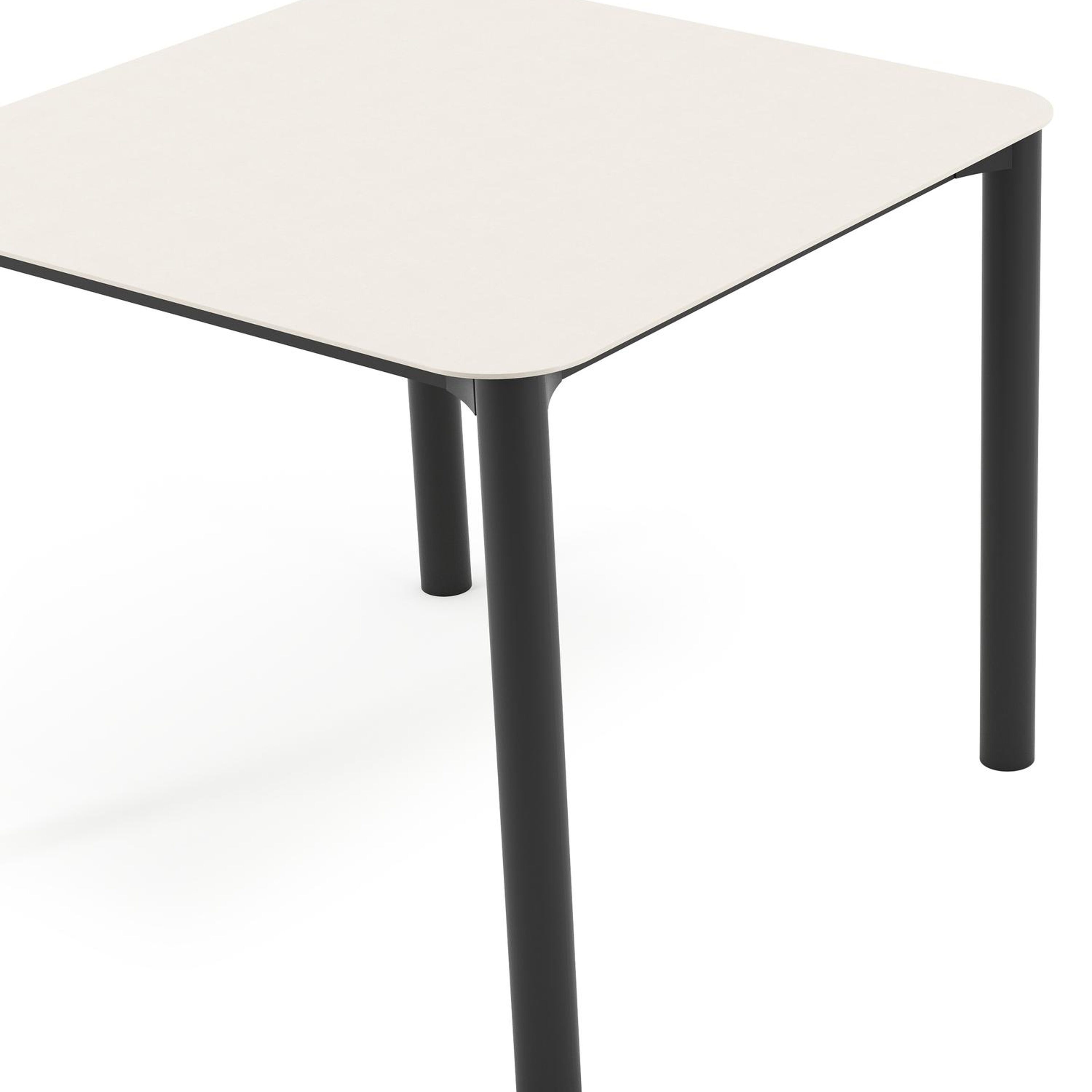 Table de jardin Orso carré arrondi en aluminium noir et céramique pleine beige - Lg. 90 x Lrg. 90 x Haut. 75 cm | Exterioo mobilier de jardin