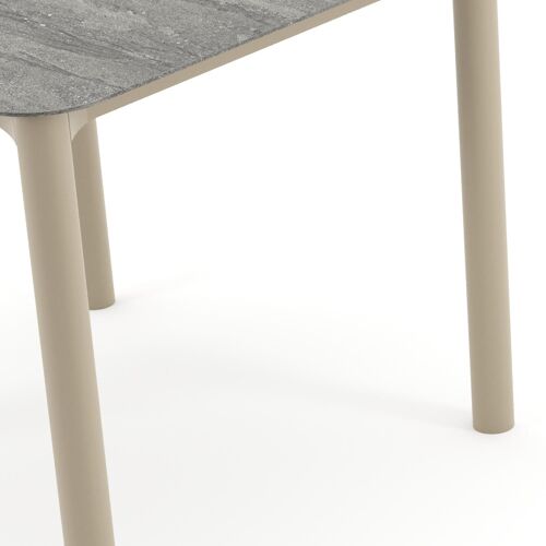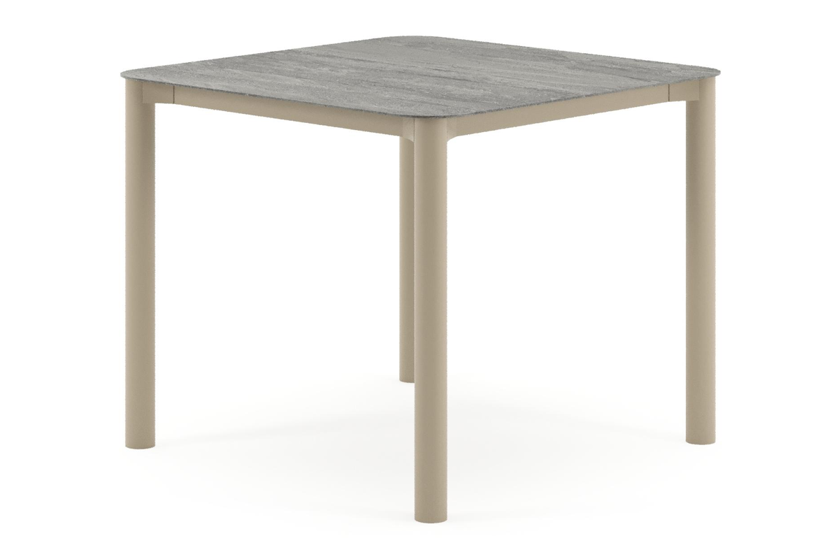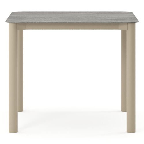 Table de jardin Orso rectangulaire arrondi en aluminium beige et céramique pleine Aspen Grey - Lg. 90 x Lrg. 90 x Haut. 74.5 cm | Exterioo
