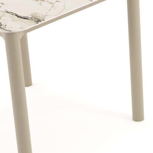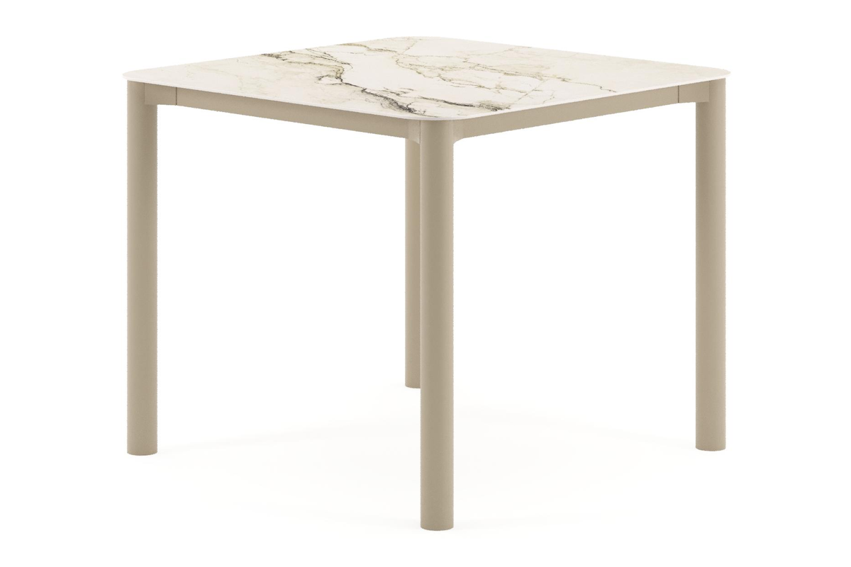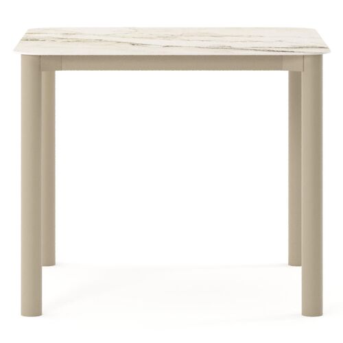 Table de jardin Orso rectangulaire arrondi en aluminium beige et céramique pleine Colorado Dunes - Lg. 90 x Lrg. 90 x Haut. 74.5 cm | Exterioo