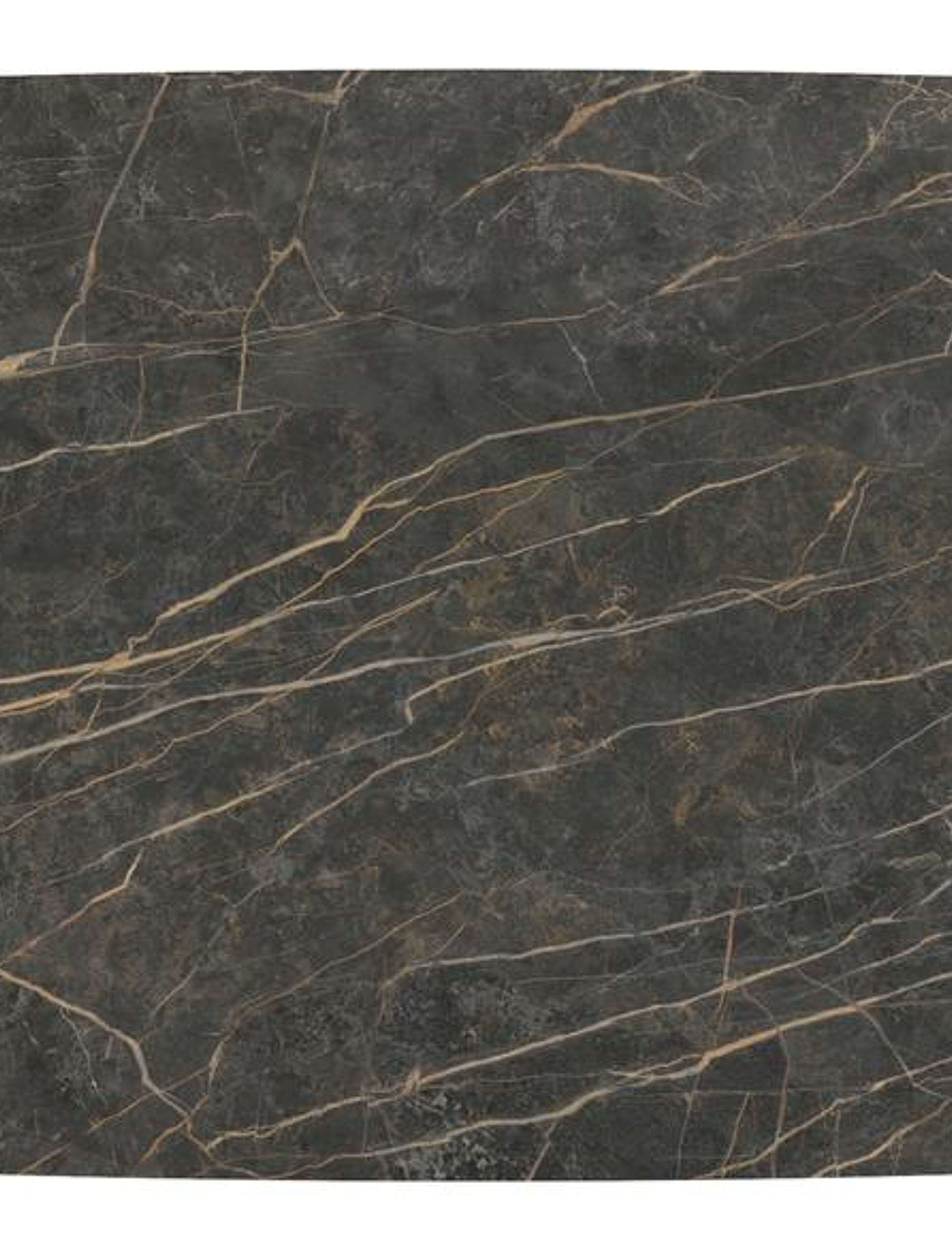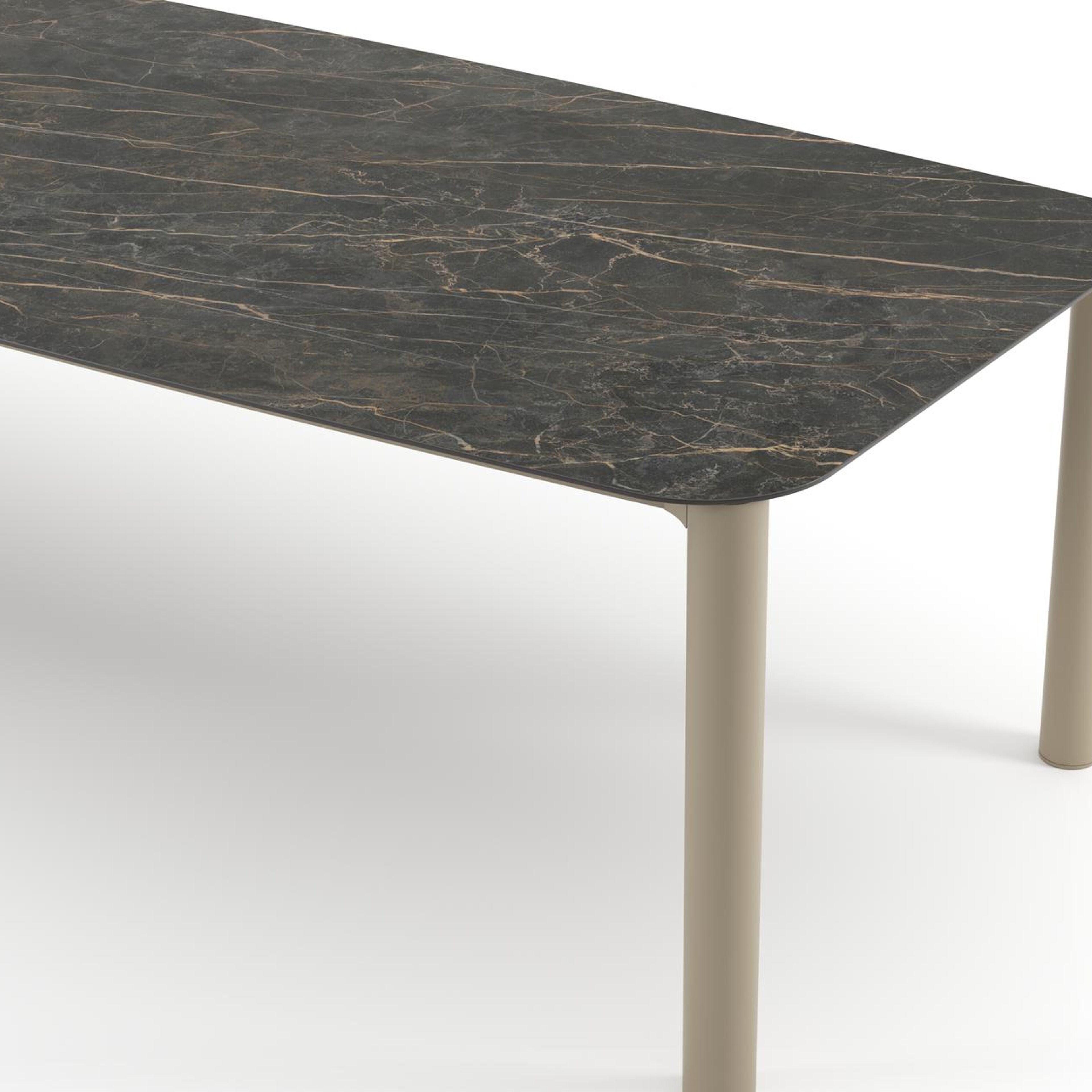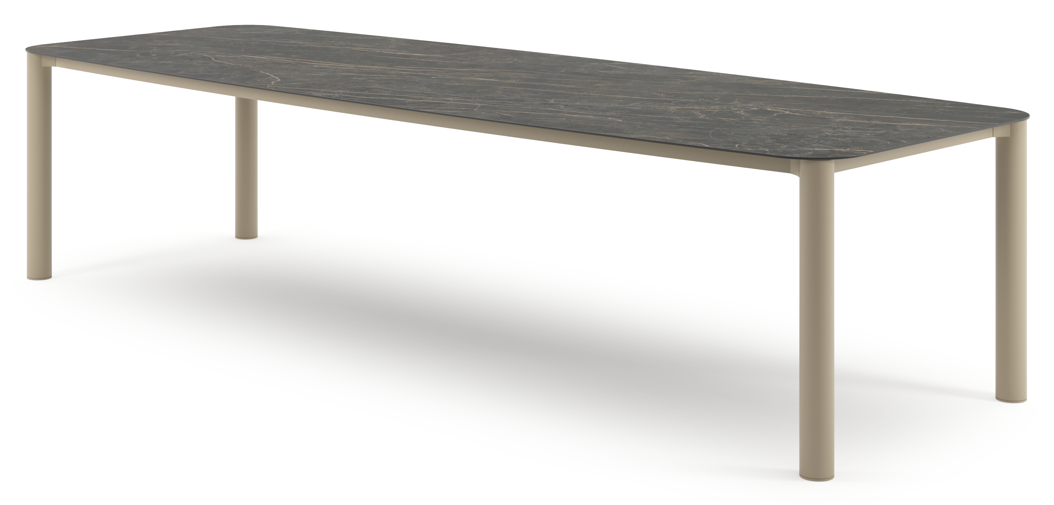 Table de jardin Orso forme de bateau en aluminium beige et céramique pleine Black Obsession - Lg. 315 x Lrg. 115 x Haut. 74.5 cm | Exterioo mobilier de jardin