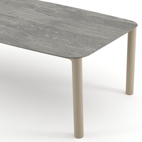 Table de jardin Orso forme de bateau en aluminium beige et céramique pleine Aspen Grey - Lg. 255 x Lrg. 115 x Haut. 74.5 cm | Exterioo