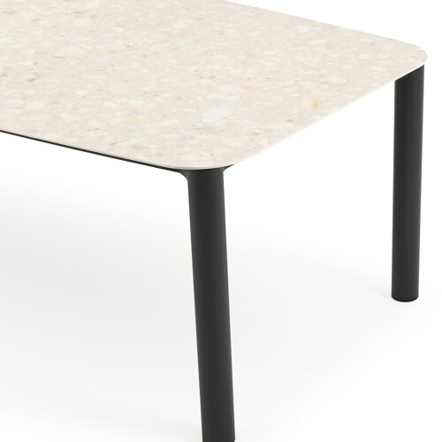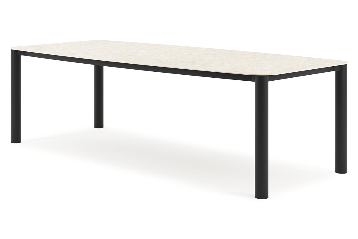 Table de jardin Orso forme de bateau en aluminium noir et céramique pleine Retrostone - Lg. 255 x Lrg. 115 x Haut. 75 cm | Exterioo