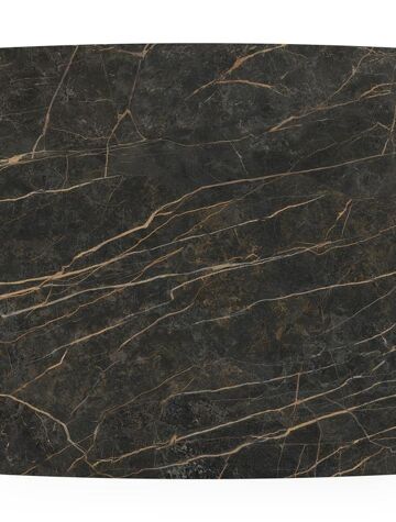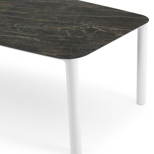 Table de jardin Orso forme de bateau en aluminium blanc et céramique pleine Black Obsession - Lg. 255 x Lrg. 115 x Haut. 75 cm | Exterioo