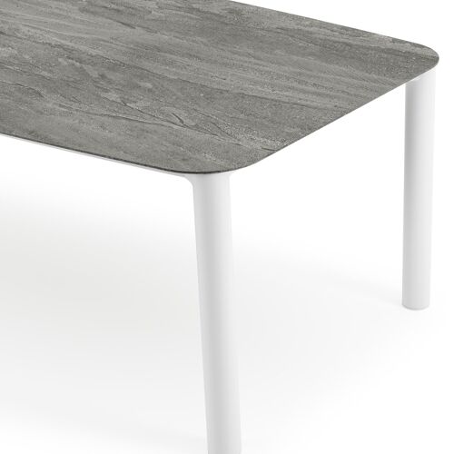 Table de jardin Orso forme de bateau en aluminium blanc et céramique pleine Aspen Grey - Lg. 255 x Lrg. 115 x Haut. 75 cm | Exterioo