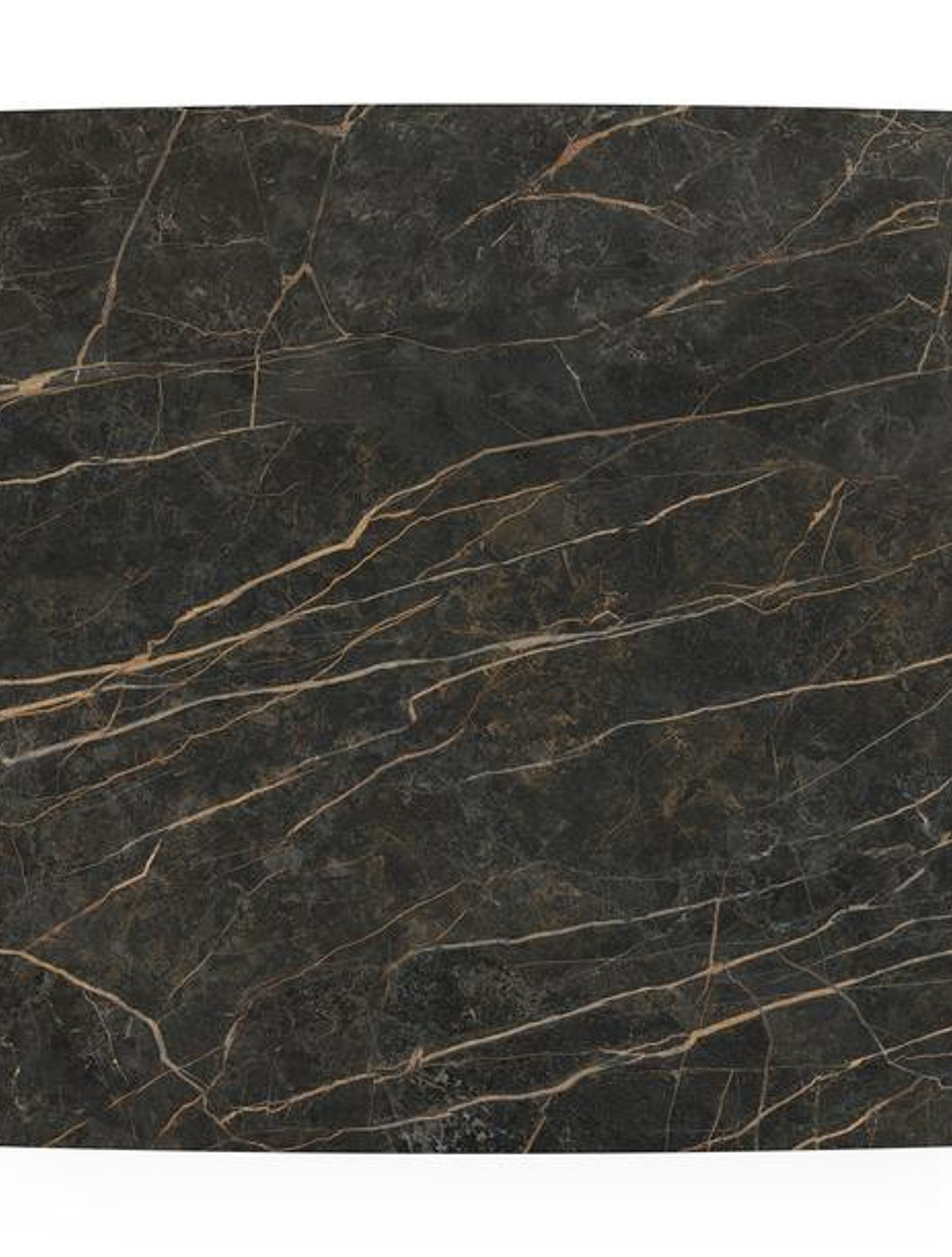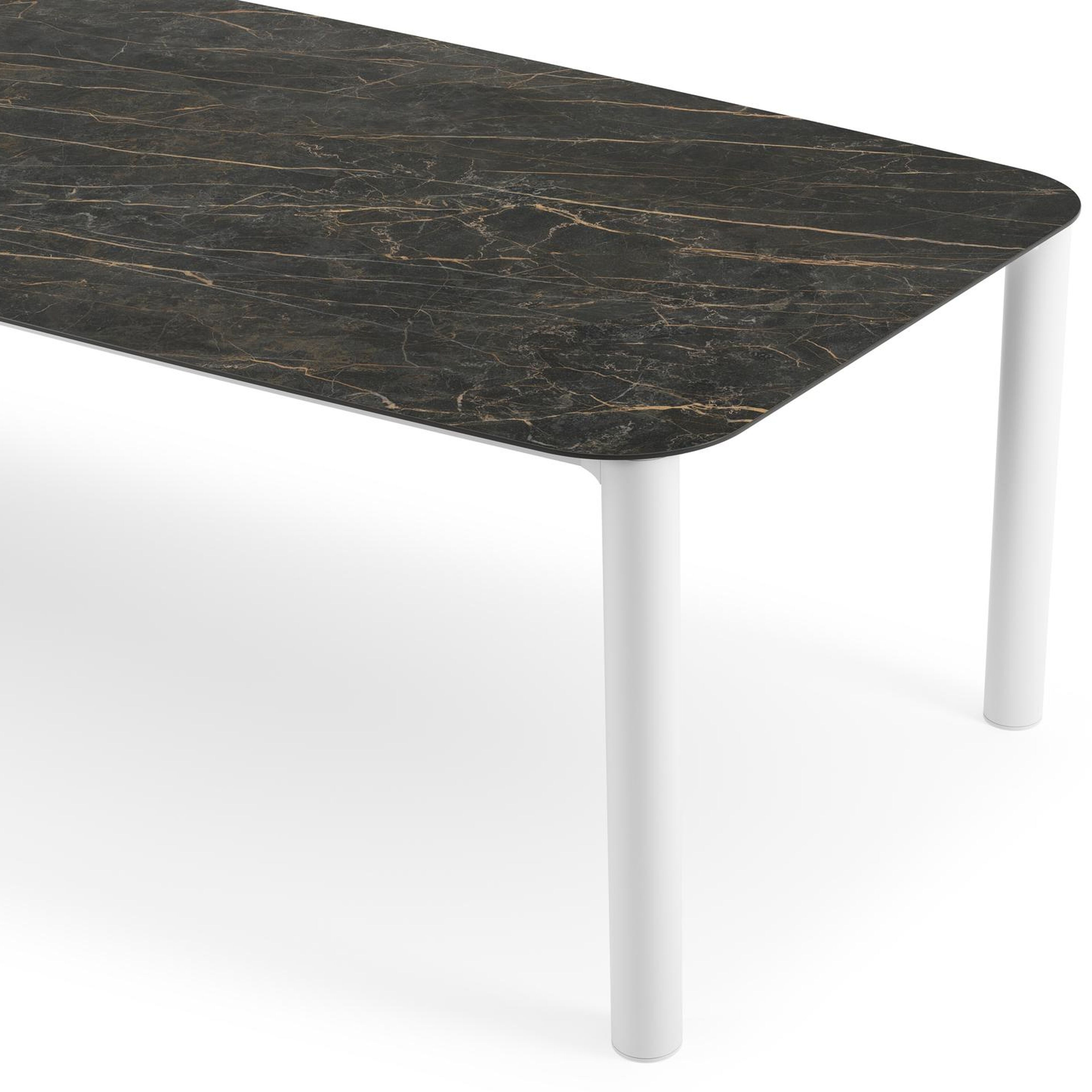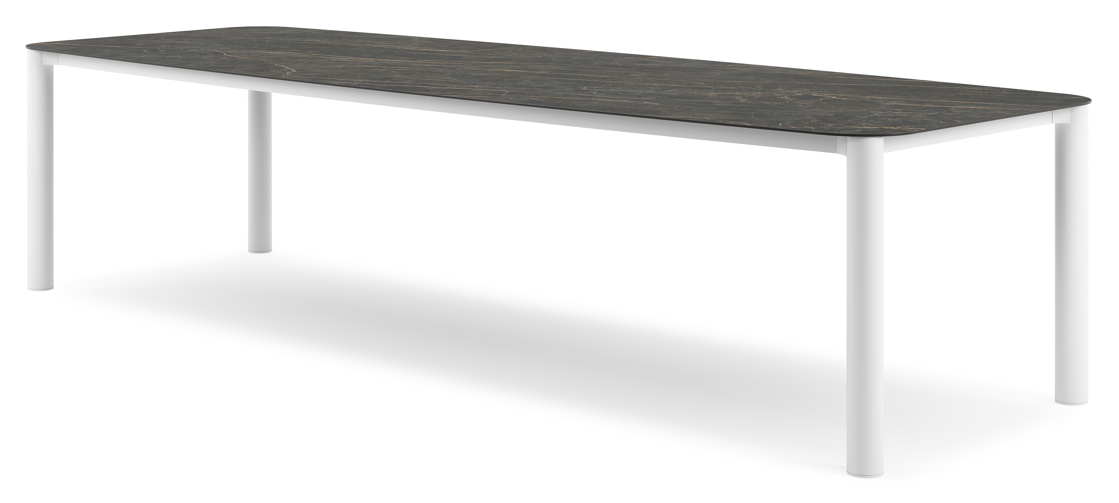 Table de jardin Orso forme de bateau en aluminium blanc et céramique pleine Black Obsession - Lg. 315 x Lrg. 115 x Haut. 75 cm | Exterioo mobilier de jardin