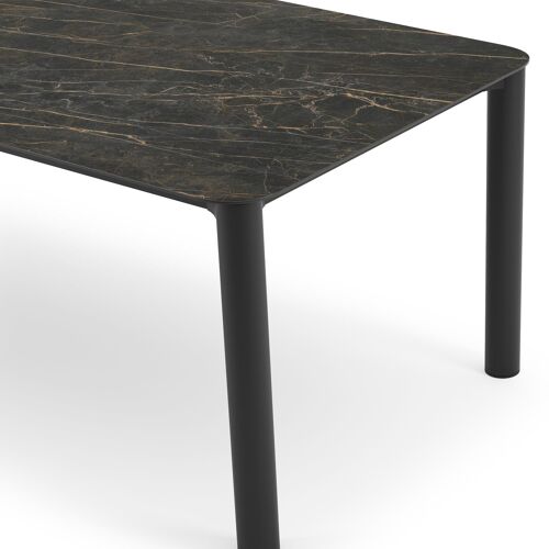 Orso tuintafel rechthoekig afgerond in zwart aluminium en volkeramiek black obsession - L 240 x B 100 x H 73.5 cm | Exterioo