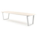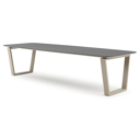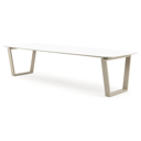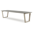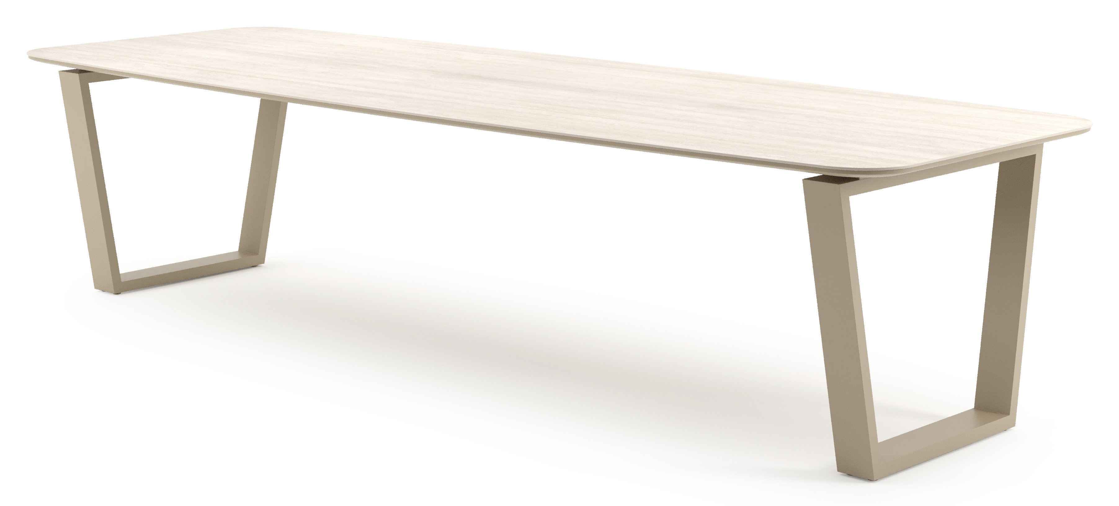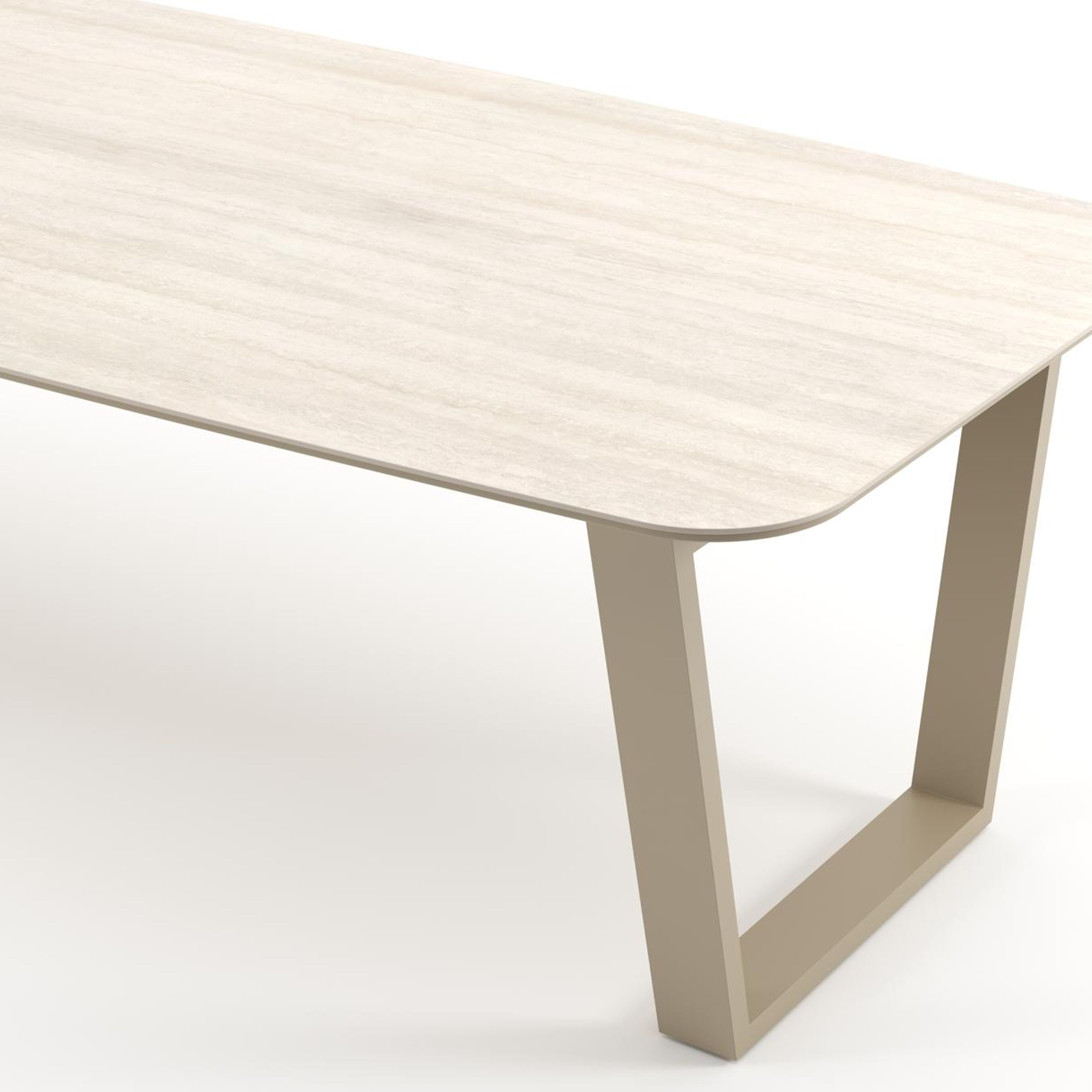 Table de jardin Pagino forme de bateau en aluminium beige et céramique pleine Travertino Bianco - Lg. 315 x Lrg. 115 x Haut. 73 cm | Exterioo mobilier de jardin