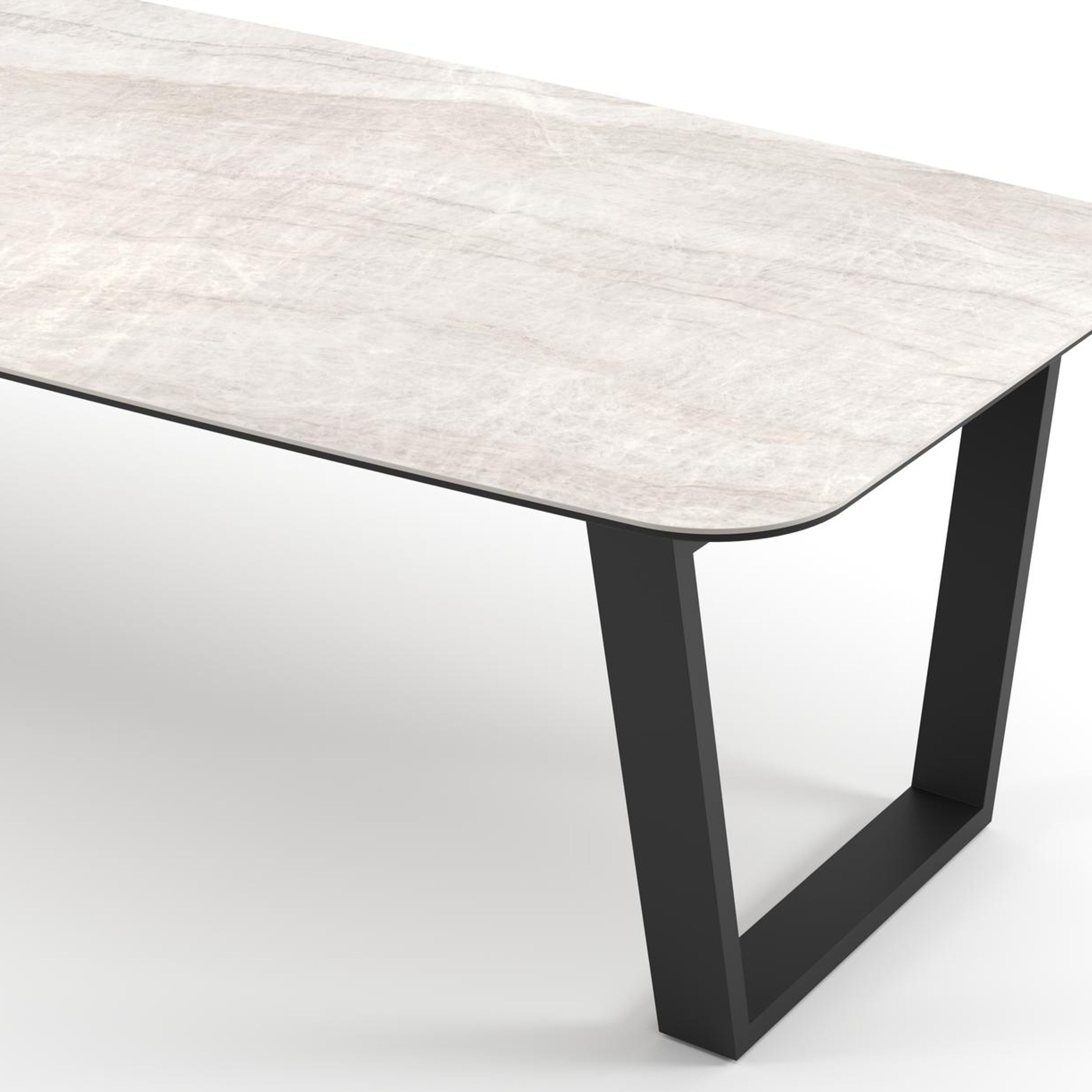 Table de jardin Pagino forme de bateau en aluminium noir et céramique pleine Taj Mahal - Lg. 315 x Lrg. 115 x Haut. 73 cm | Exterioo mobilier de jardin