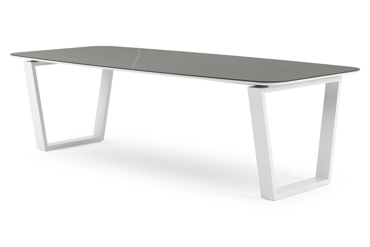 Table de jardin Pagino forme de bateau en aluminium blanc et céramique pleine Calatorao - Lg. 255 x Lrg. 115 x Haut. 73 cm | Exterioo