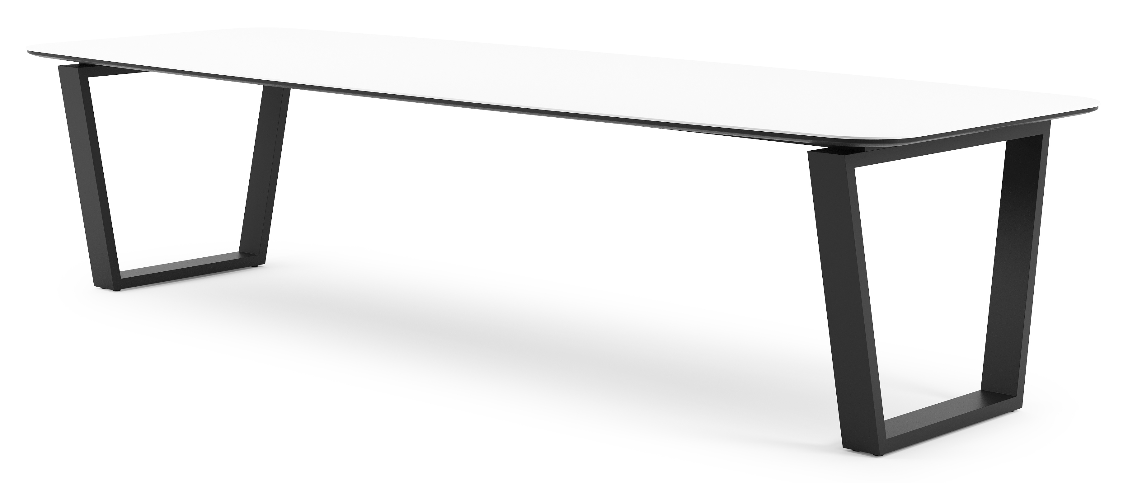 Table de jardin Pagino forme de bateau en aluminium noir et céramique pleine Arctic White - Lg. 315 x Lrg. 115 x Haut. 73 cm | Exterioo mobilier de jardin