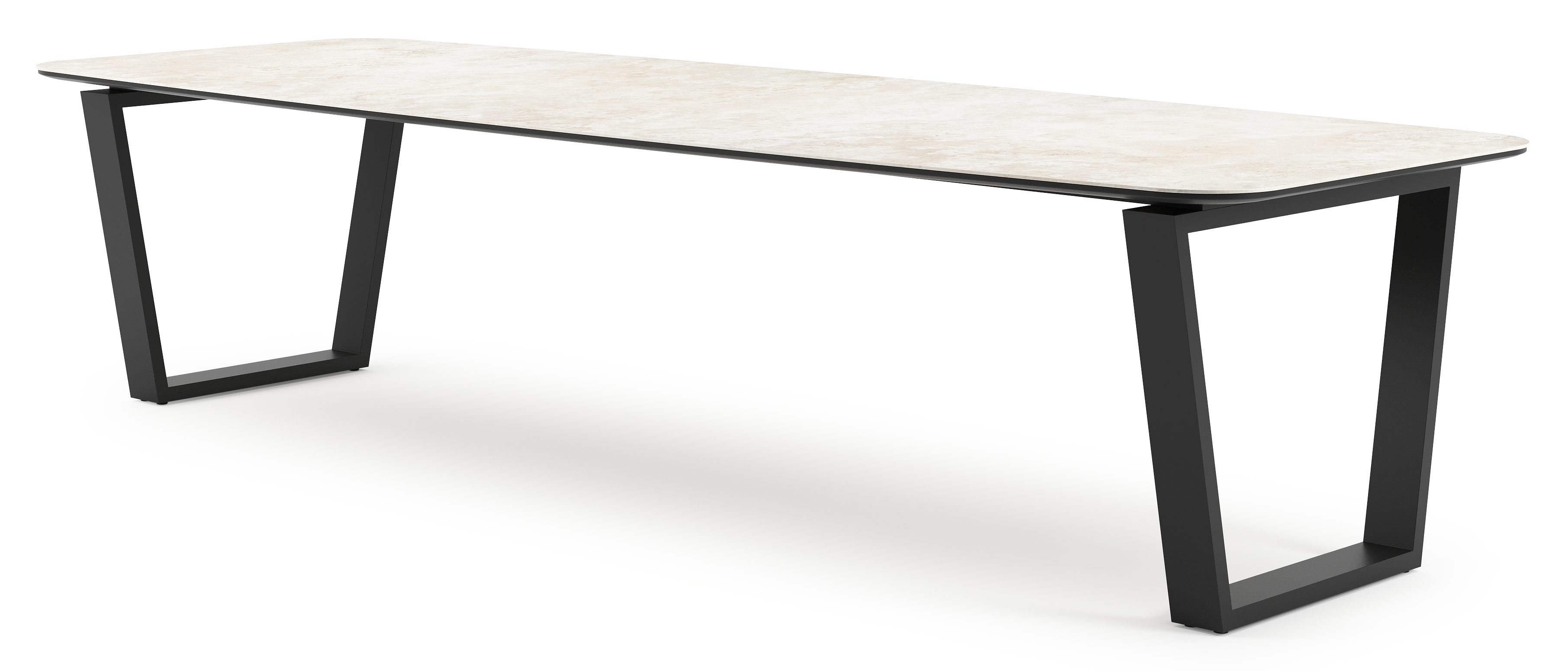 Table de jardin Pagino forme de bateau en aluminium noir et céramique pleine Rapolano Lg. 315 x Lrg. 115 cm | Exterioo mobilier de jardin