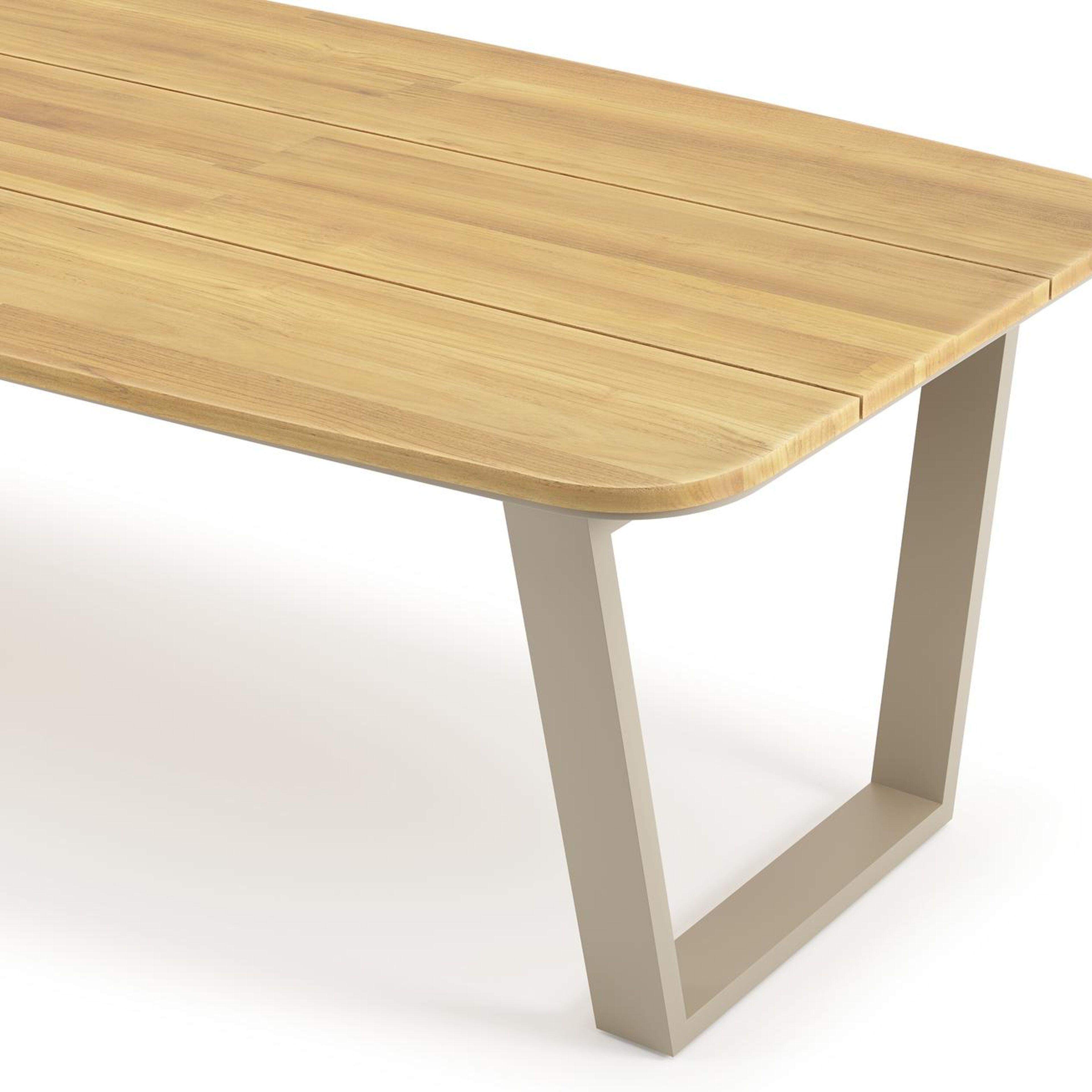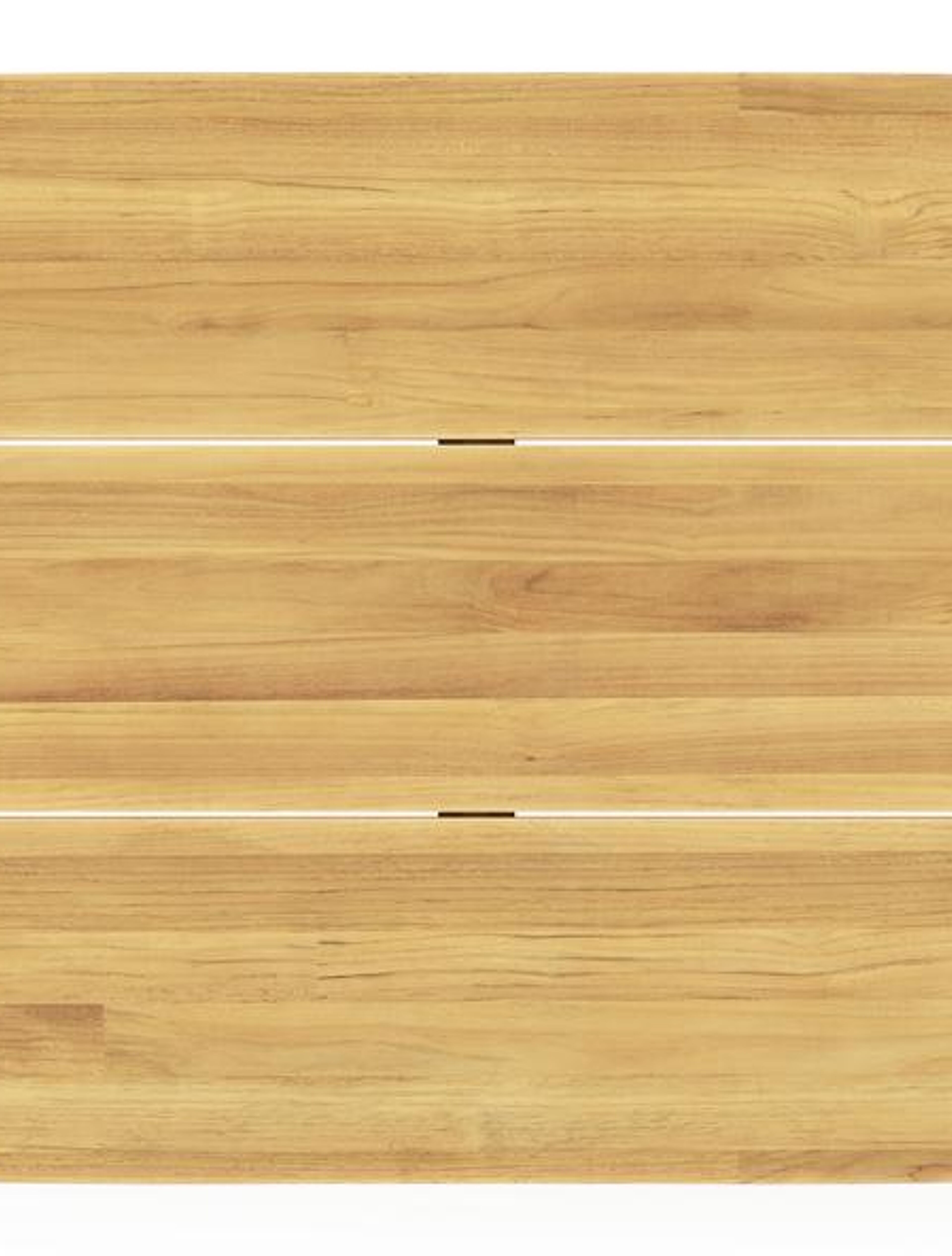 Un plateau de table en teck est synonyme de qualité exceptionnelle et de design naturel. Le teck est une essence de bois de qualité qui se caractérise par sa dureté. Étant donné que le bois vit, sa structure ou sa couleur peuvent légèrement différer de ce qui est présenté à l’image.