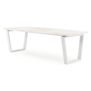 L’armature de la table est en aluminium inoxydable, un matériau robuste mais léger, qui est facile à déplacer. La surface présente une finition lisse, de sorte qu’elle n’attire pas la saleté et est facile à entretenir. Le revêtement poudré garantit la résistance aux UV et aux intempéries de votre meuble.